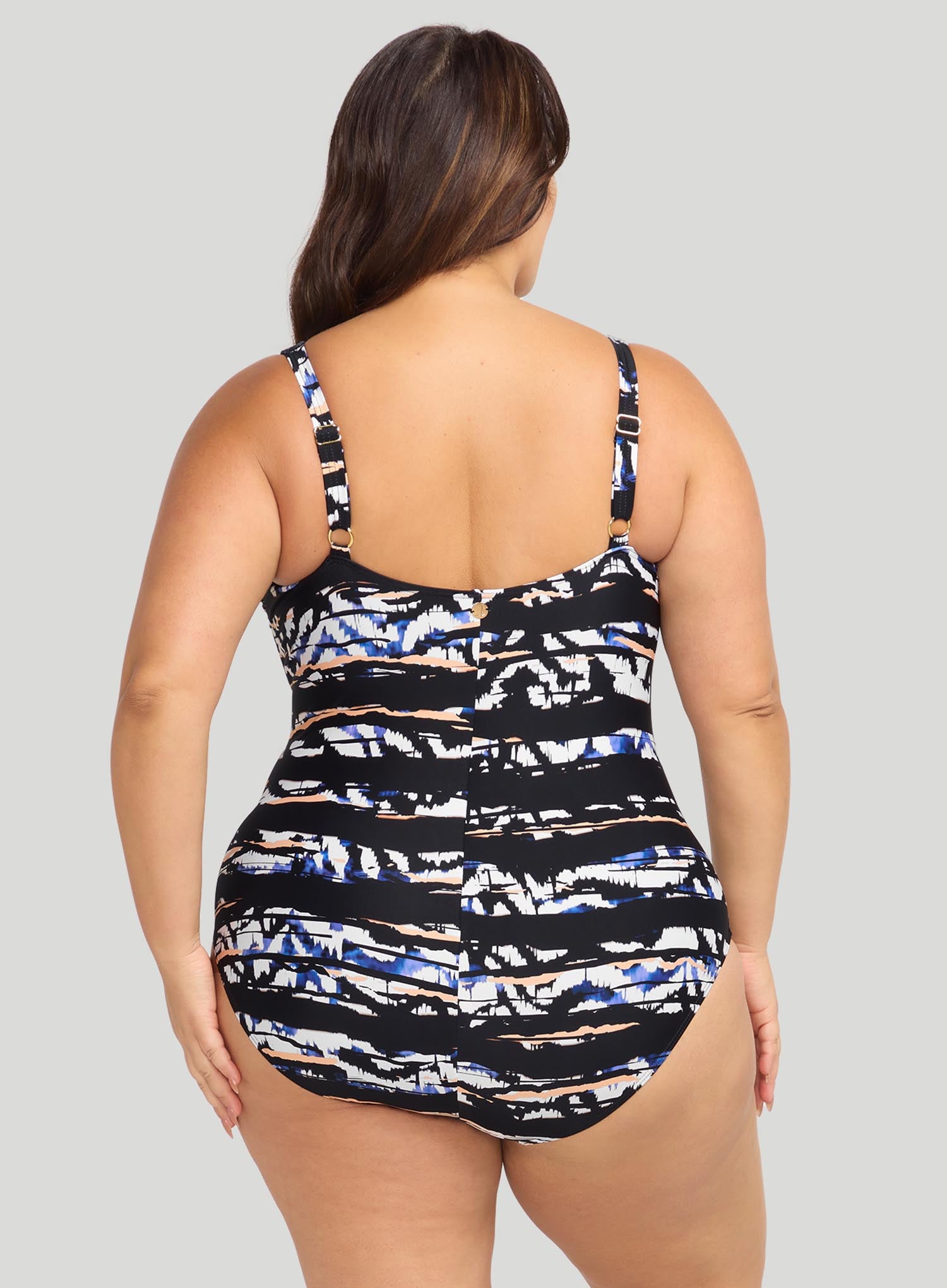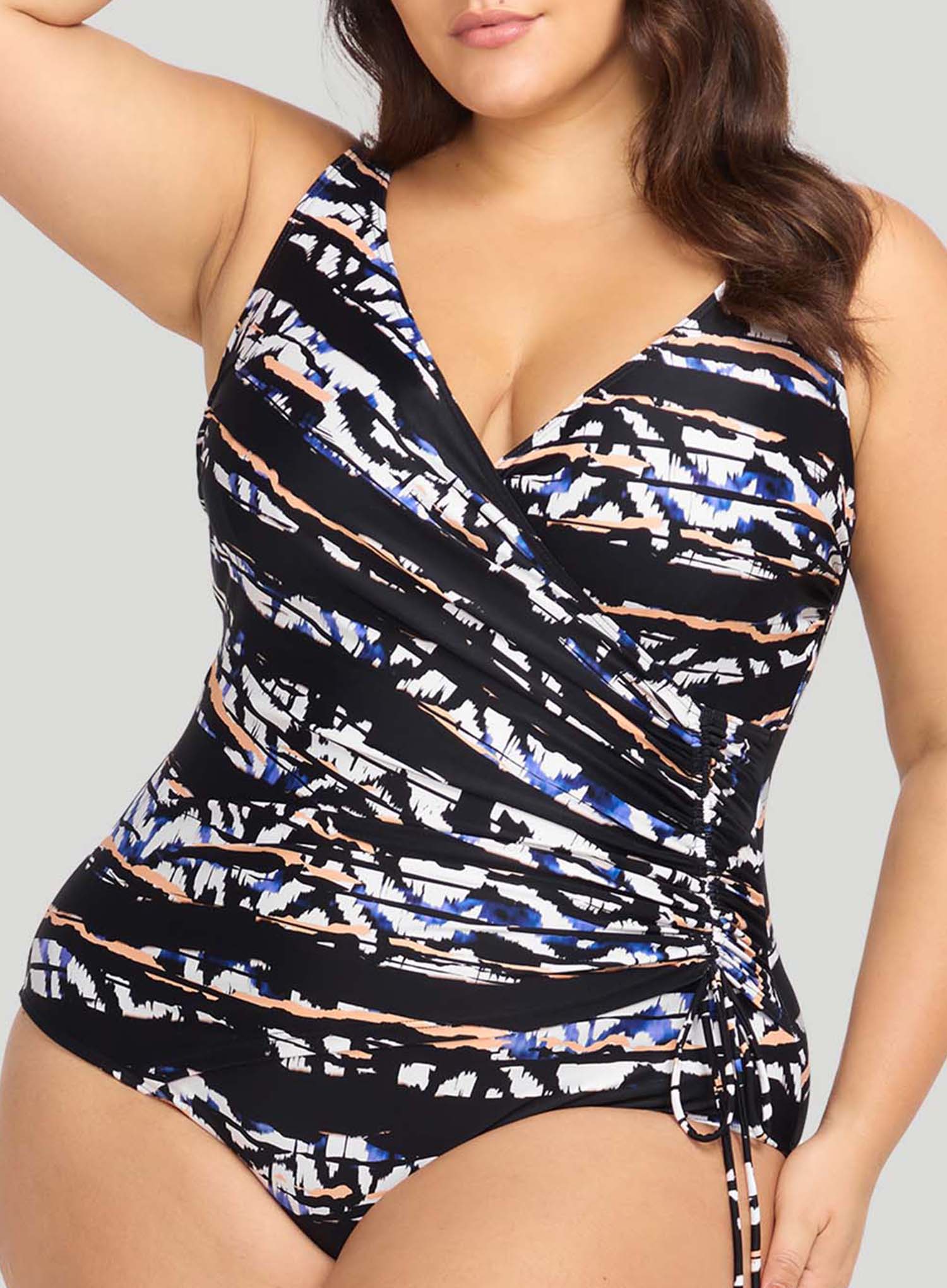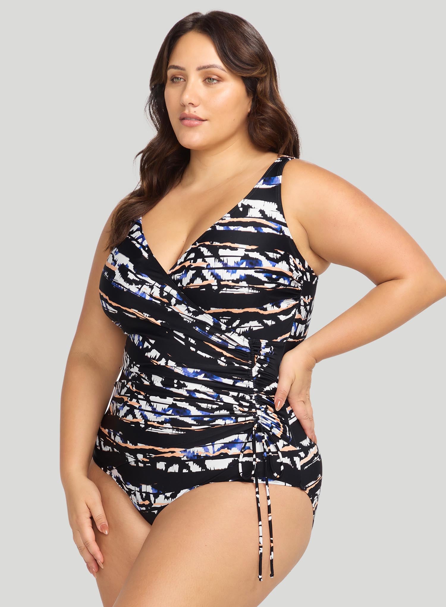 ARTESANDS Provenance Rembrant One Piece Black guides you through a journey of elegance and grace with its exquisite craftsmanship. Inspired by images of precious relics from bygone eras, the provenance collection features motifs of paintbrush strokes and ancient scrolls. This flattering design features a ruched front and side drawstring that hugs you in all the right places. The soft cups and powermesh lining lend themselves to all day comfort so you can feel confident in more ways than one.