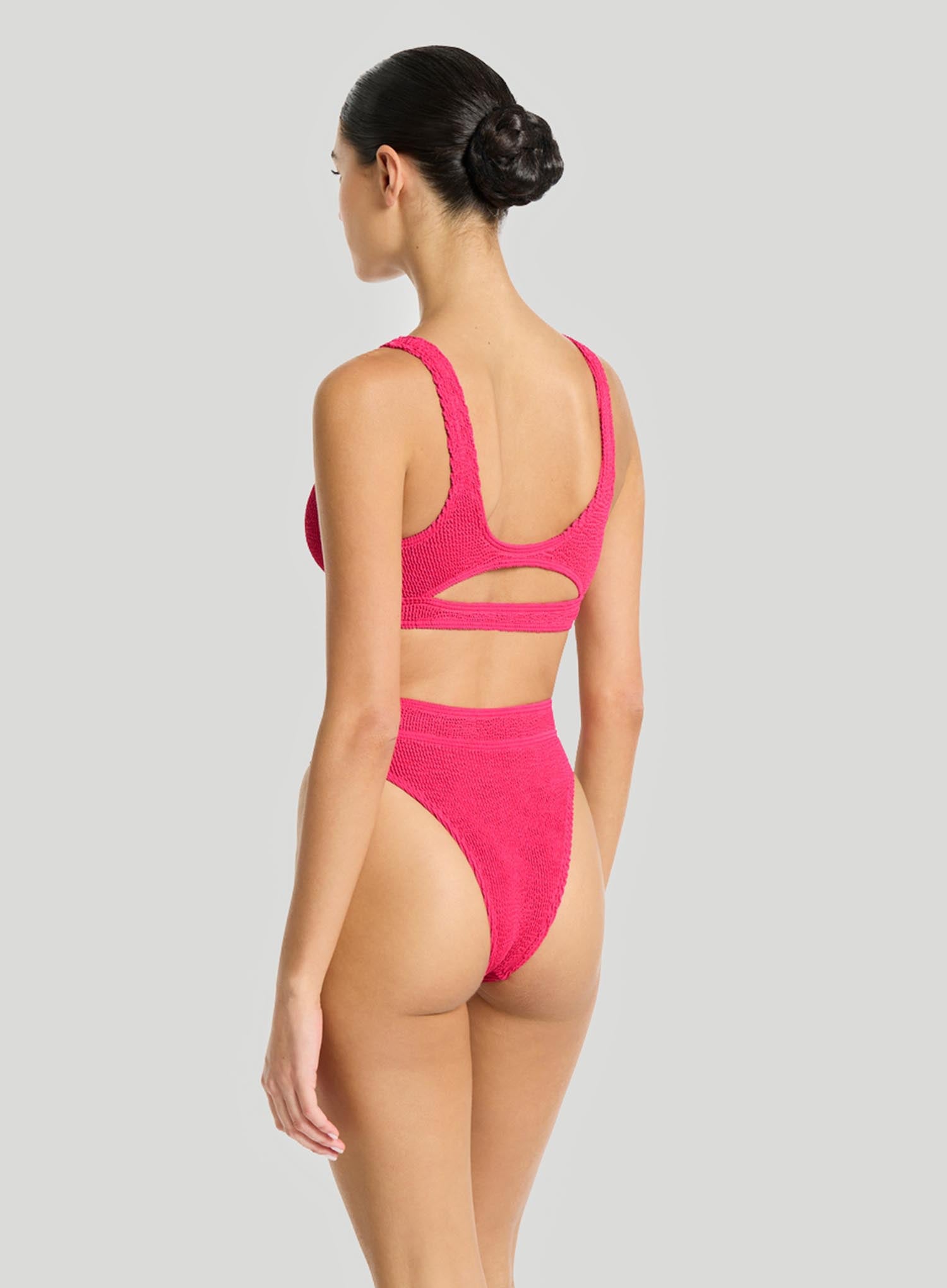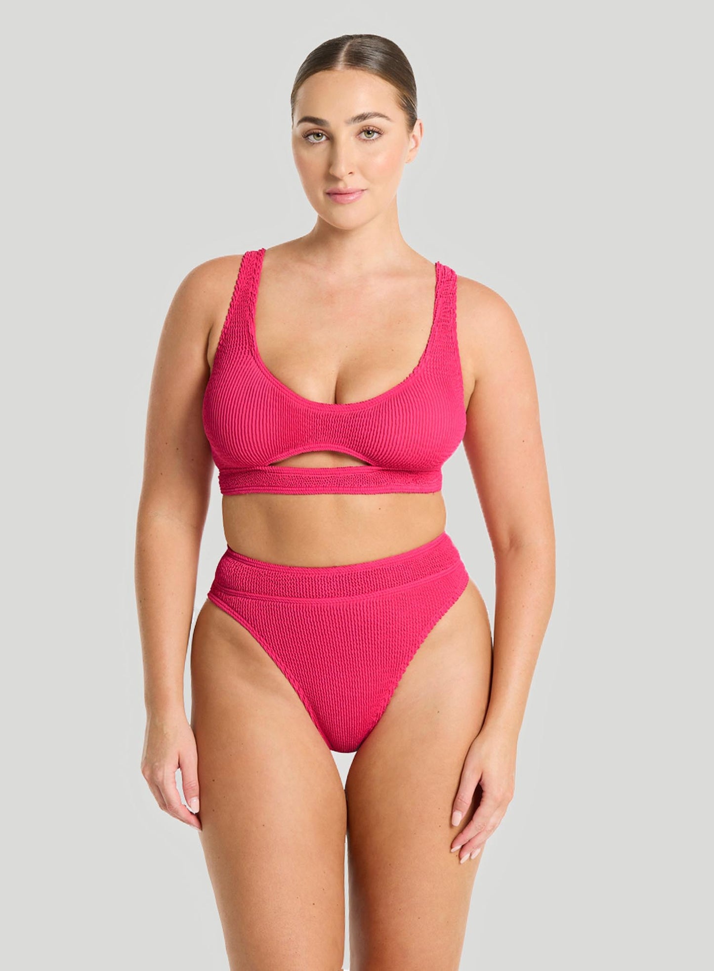 BOND EYE Savannah Bikini Brief is back for a limited time in this unique Aegean Blue eco collection. Luxurious and ultra flattering, this high-waisted design is artisanally handmade and knitted with premium European fibres. This collection is also designed with intention, incorporating ethical and eco-friendly manufacturing practices, so you can make a bold statement with the Earth in mind.