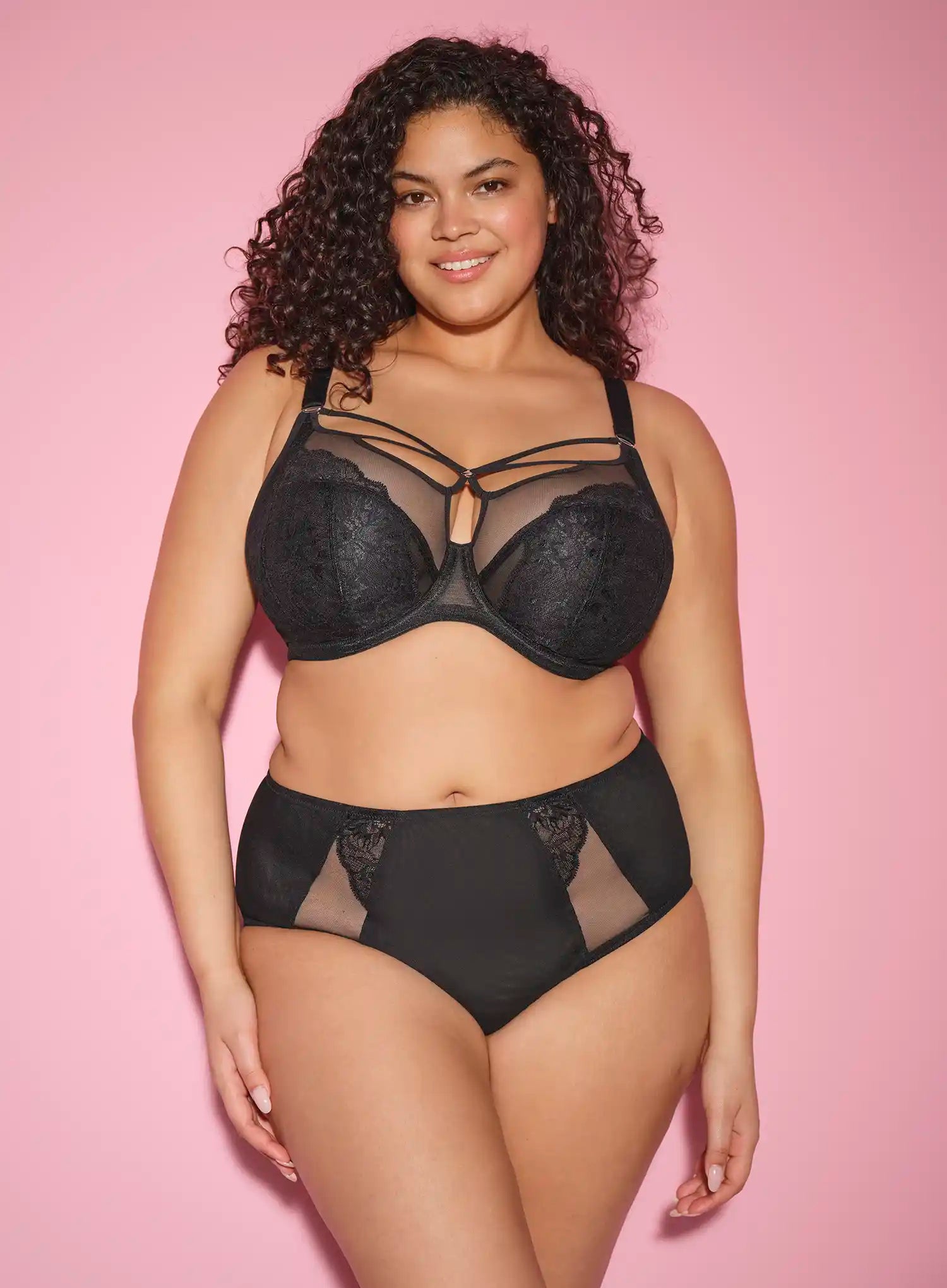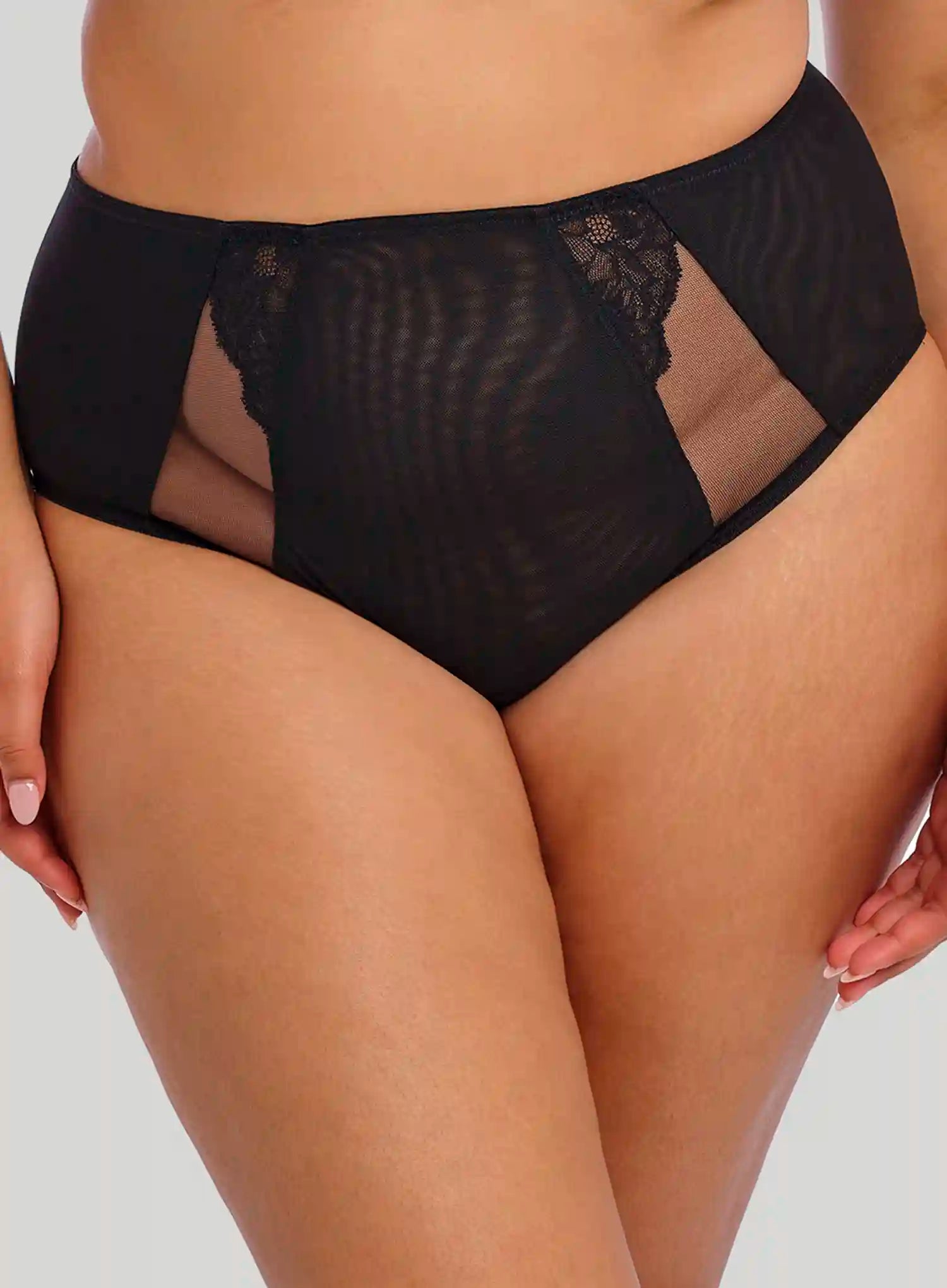 ELOMI Brianna Full Brief in Black will soon become a favourite. It has a double-layered stretch mesh front and back plus sheer tulle side panels with stretch lace overlay, making it a perfect fit and a big confidence booster! Your newest wardrobe staple.
