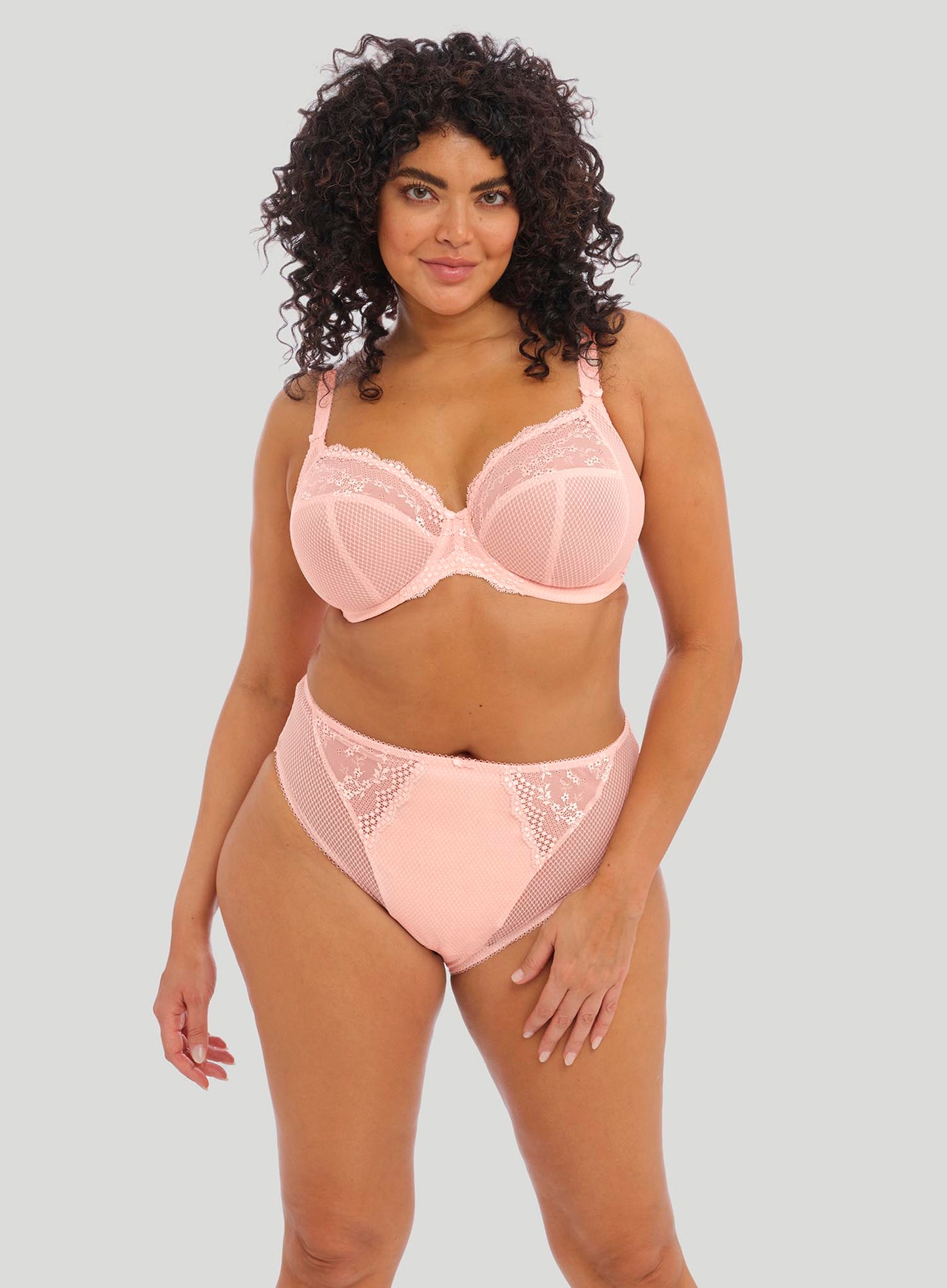 ELOMI Charley Stretch Plunge Bra in Ballet Pink is a stylish, comfortable, and versatile plunge bra. Our customers have been delighted to find such a pretty bra that can offer so many features. What makes Charley especially unique is how well the breasts are held in place despite the lower front centre of the bra. The elegant stretch lace not only looks gorgeous, but it serves the functional purpose of encasing each breast, preventing any spillage.