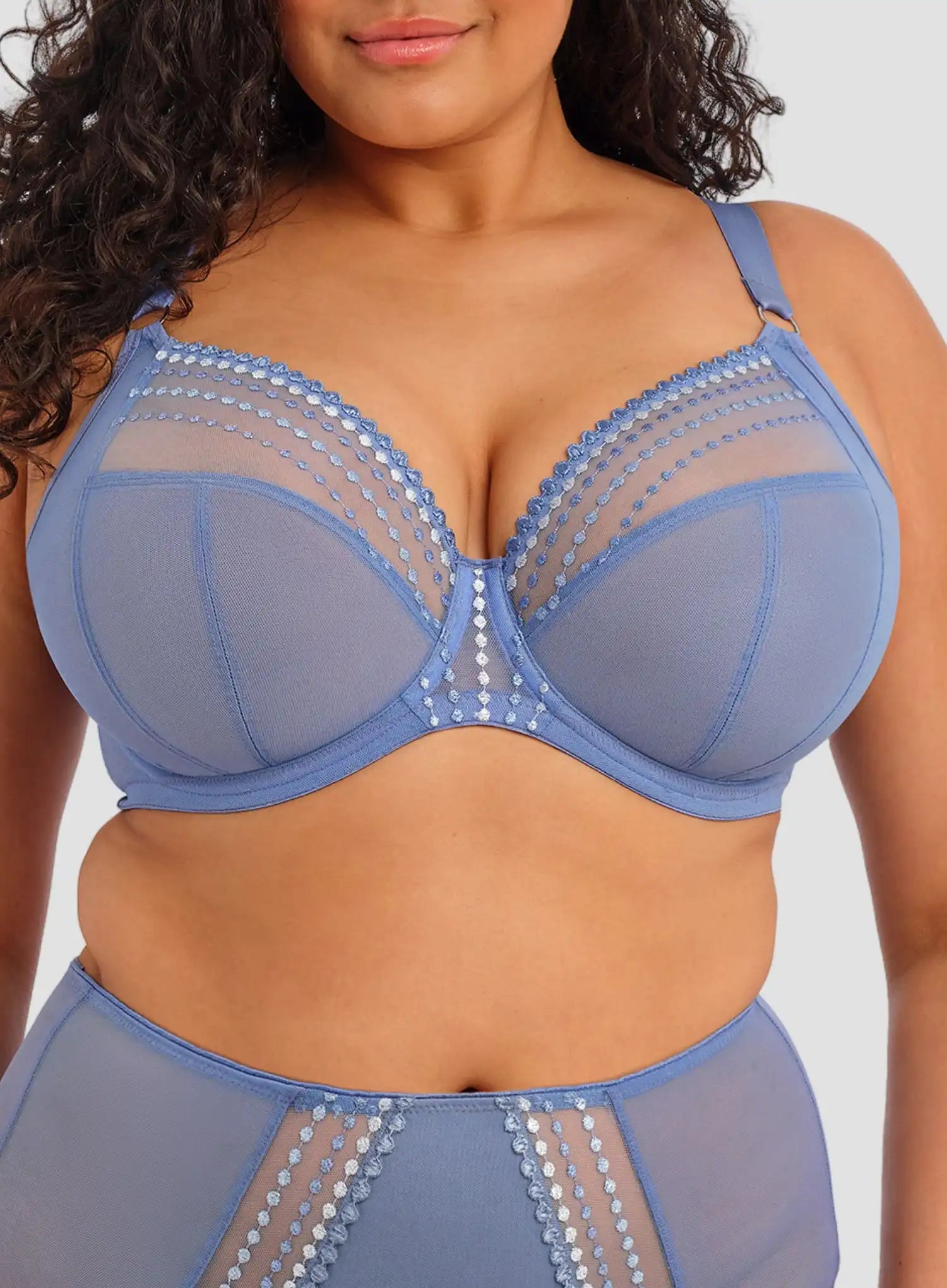 ELOMI Matilda Plunge Bra Lunar Blue is an underwired bra designed to provide exceptional support, uplift, and a flattering forward projection for fuller busts. The low centre front creates a true plunge effect without push-up, while the three-section cups with side support shape and lift for a smooth, confident silhouette.