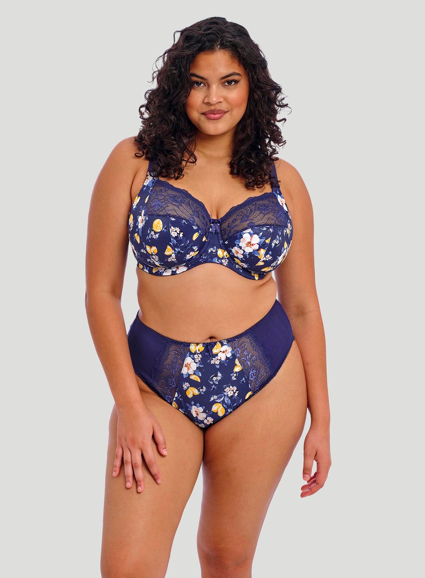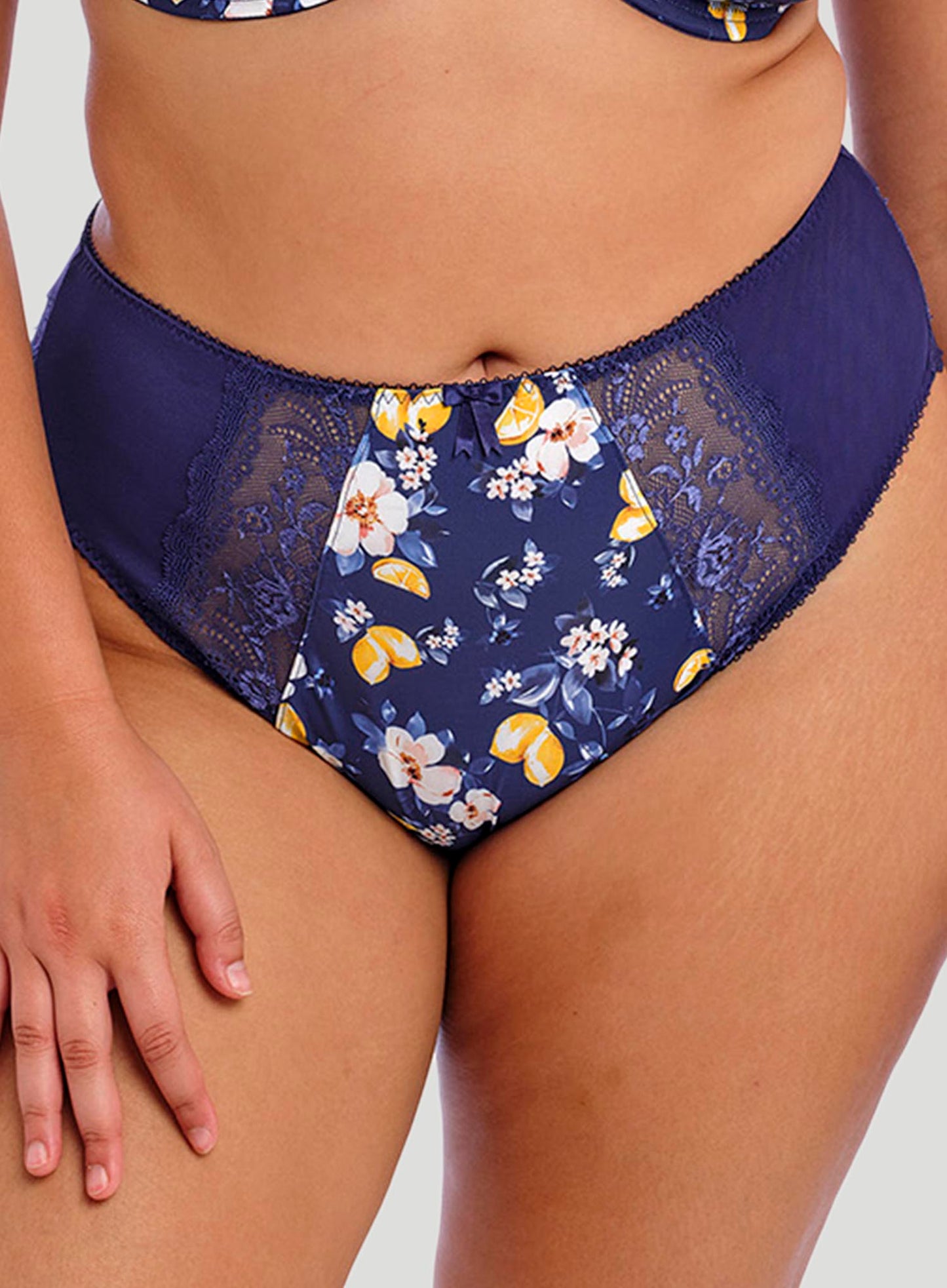 ELOMI Morgan High Leg Brief in Sicilia is a new addition to the Morgan collection, in a print that has us dreaming of summer in Italy. This design is printed on matte nylon elastase fabric with stretch lace panels at the side front. Finished with bow detail at the centre front.
