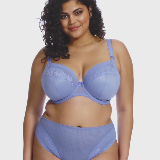 ELOMI Nerina High Leg Brief in Cornflower is the ultimate blend of comfort and style, quickly becoming a fan-favourite for its ultra-flattering cut. Designed with a slightly higher leg for a beautifully elongated silhouette, this brief is as chic as it is comfortable. The double-layer stretch mesh at the front and back ensures just the right amount of coverage, while the powerful stretch lace at the leg edges is soft, flat, and smooth for a seamless finish. A stitch-free edge prevents VPL, making it perfect under any outfit, and encased elastics at the gusset add extra comfort. Finished with a delicate bow at the centre front, Nerina is your go-to for a modern, effortlessly elegant look.
