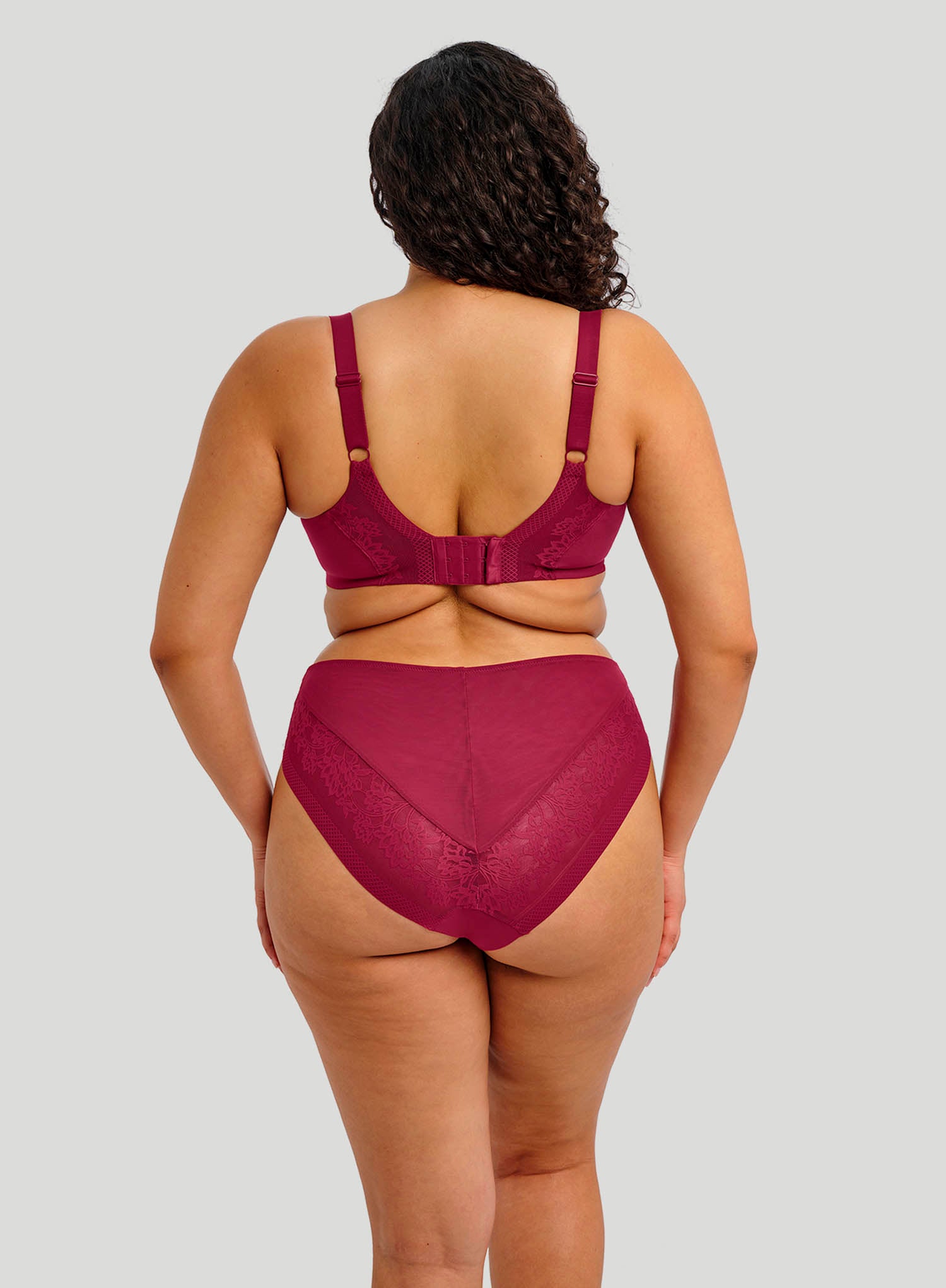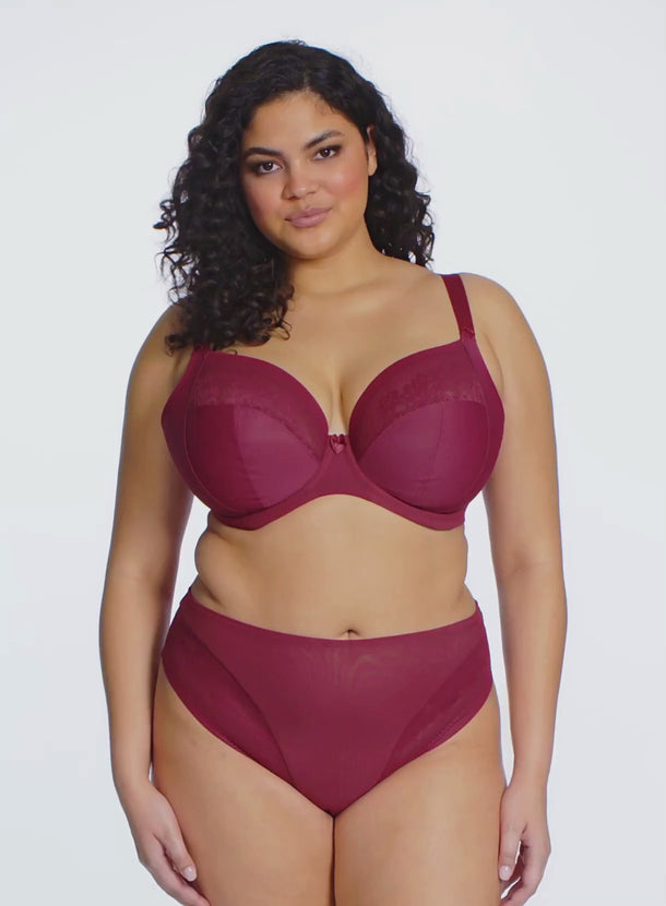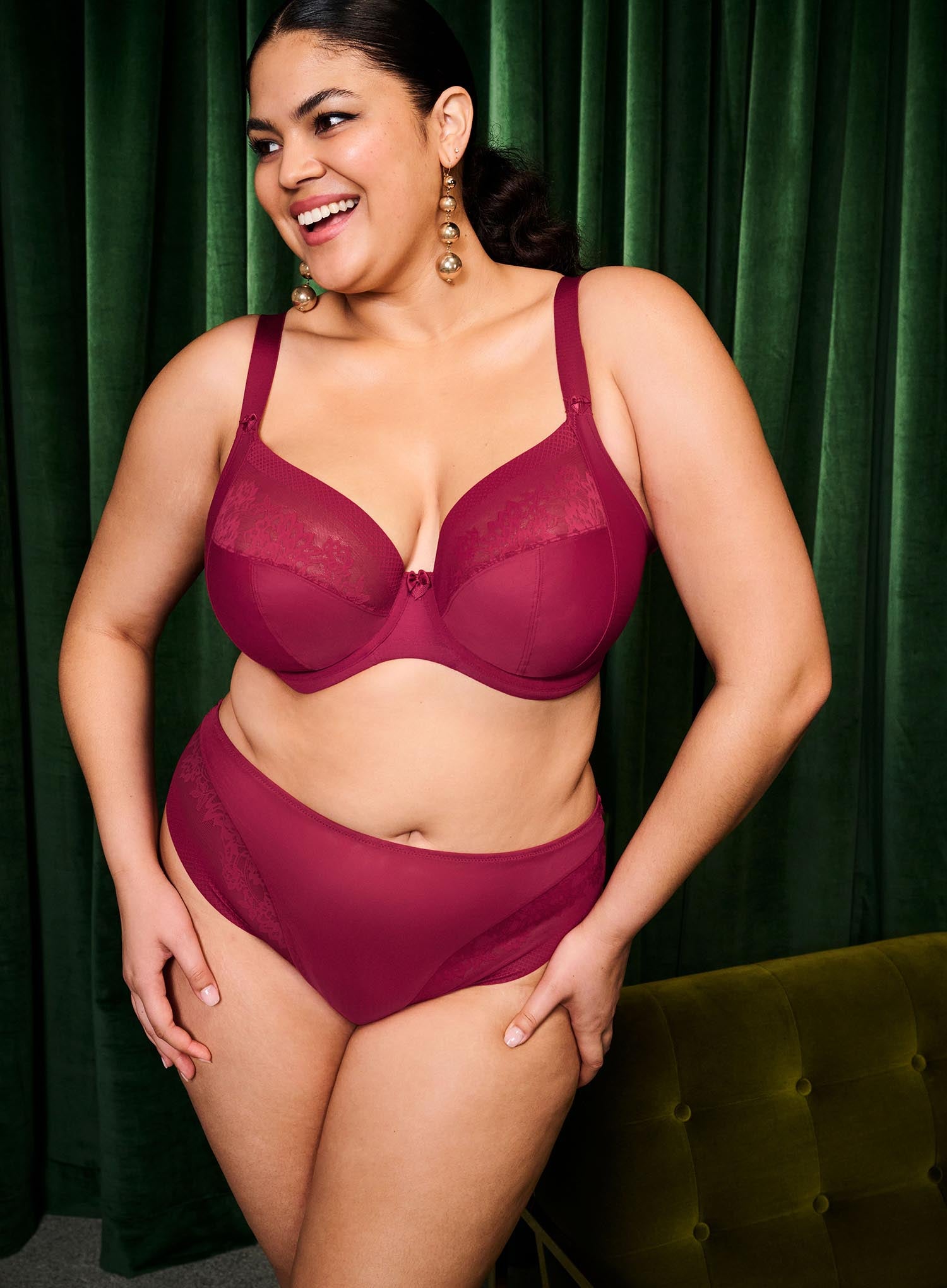 ELOMI Nerina Underwired Plunge Bra in Rouge makes a bold return for autumn/winter in a striking deep red shade, perfect for the cooler season. Based on the beloved Lucie frame, Nerina features a plunge neckline for a natural, lifted shape without added padding, making it a great option for everyday style with a touch of drama.