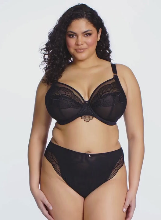 ELOMI Priya Brazilian in Black is a treat for your lingerie drawer. The Priya collection embodies all things 1920s glamour. Draped beading and embroidery inspired by decadent chandeliers set this collection apart. DeBra's Fitting Consultants describe it as the deliciously luxurious feel brief, and the elegant Priya Brazilian is now available in sexy black.