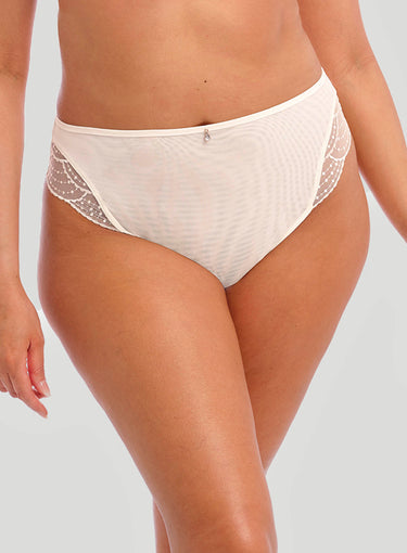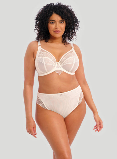 ELOMI Priya Brazilian in Vanilla is a treat for your lingerie drawer. The Priya collection embodies all things 1920s glamour. Draped beading and embroidery inspired by decadent chandeliers set this collection apart. DeBra's Fitting Consultants describe it as the deliciously luxurious feel brief, and the elegant Priya Brazilian is now available in a demure Vanilla colourway.