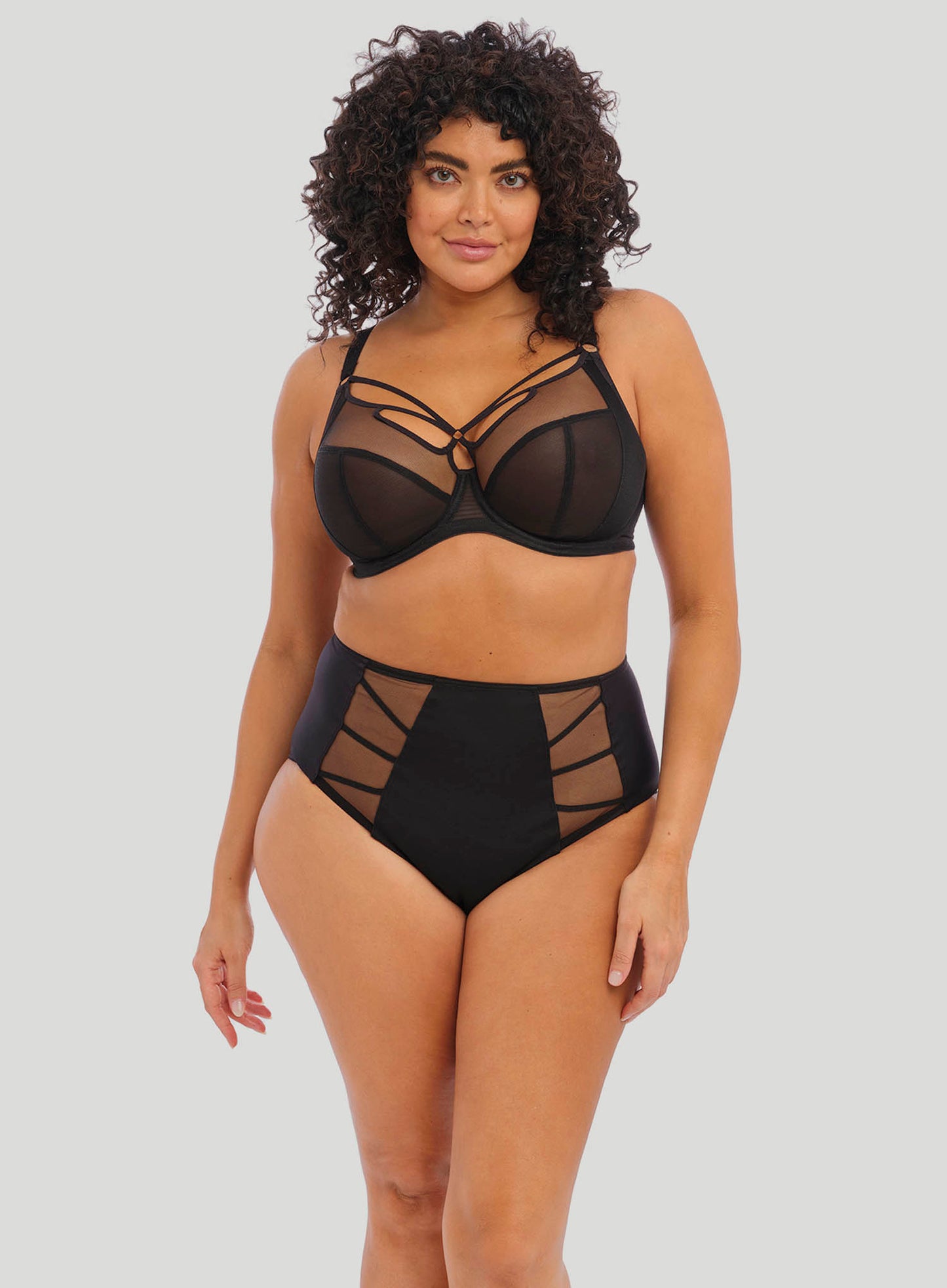 ELOMI Sachi Full Brief in Black kickstarts the season with the much-loved Sachi collection. Comprising embroidered panels for lighter coverage, the Sachi Full Brief is perfect to pair with the Sachi Underwire Plunge Bra.