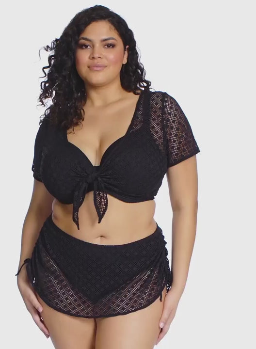 ELOMI SWIM Bazaruto Beach Top Black is the perfect throw-on layer for beach days and poolside lounging. Crafted from a crochet-inspired fabric, it offers lightweight coverage with a relaxed, breezy feel.