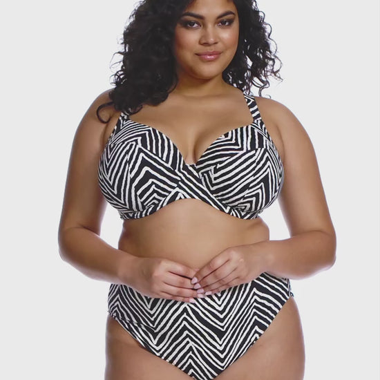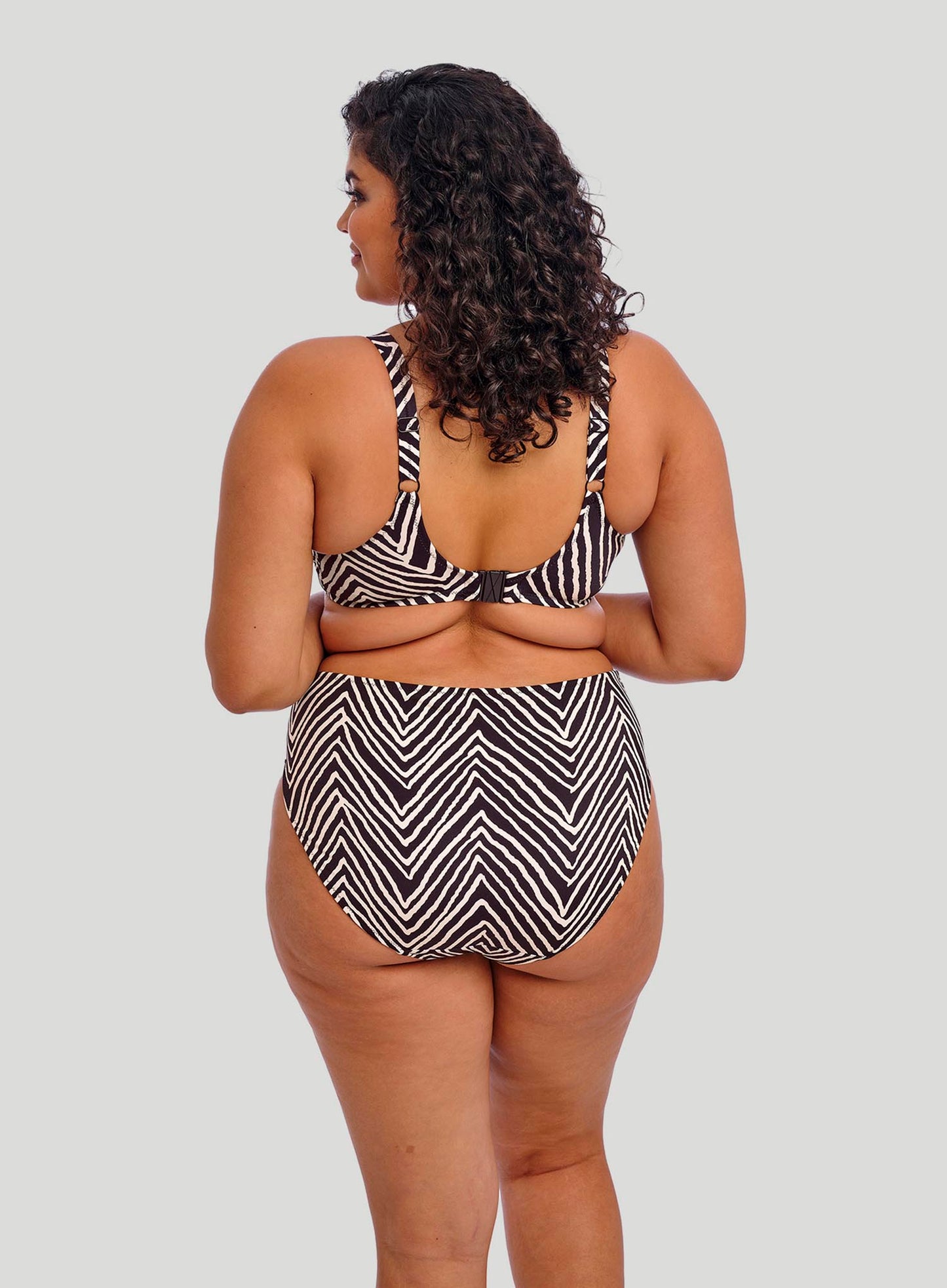 ELOMI SWIM Fiji Falls Mid Rise Bikini Brief Black is a curve fit classic that offers confident coverage with a bold twist. Sitting just under the belly button, this mid-rise brief features a monochrome zebra-inspired print for a look that’s both timeless and trend-forward. Made from lightweight LYCRA® XTRA LIFE™ fabric and fully lined for comfort and modesty, it’s designed to flatter curves and pair perfectly with any top from the Fiji Falls collection. Offering good coverage and a secure fit, this swim brief brings together comfort, durability, and bold style for your next beach or poolside escape.