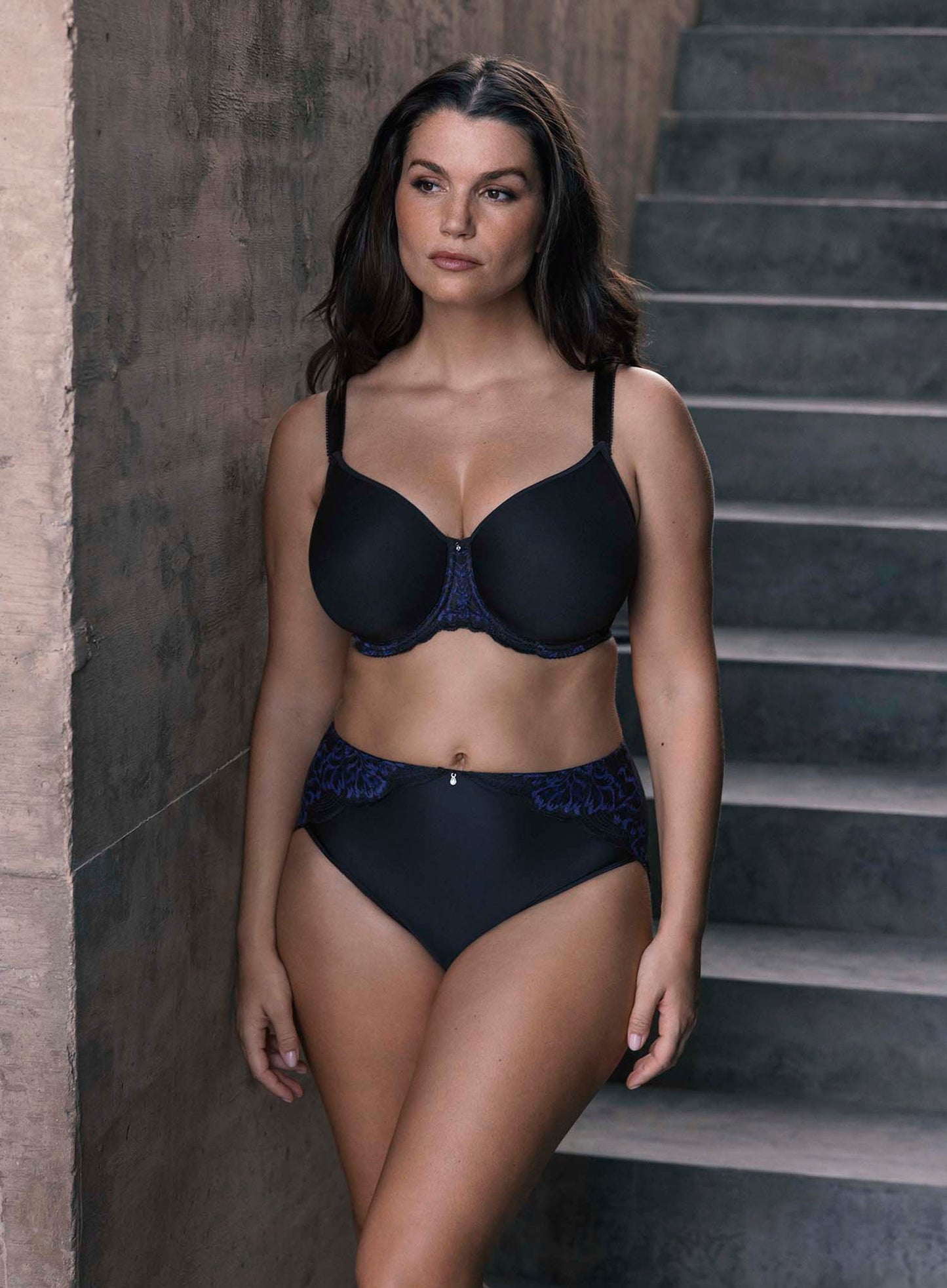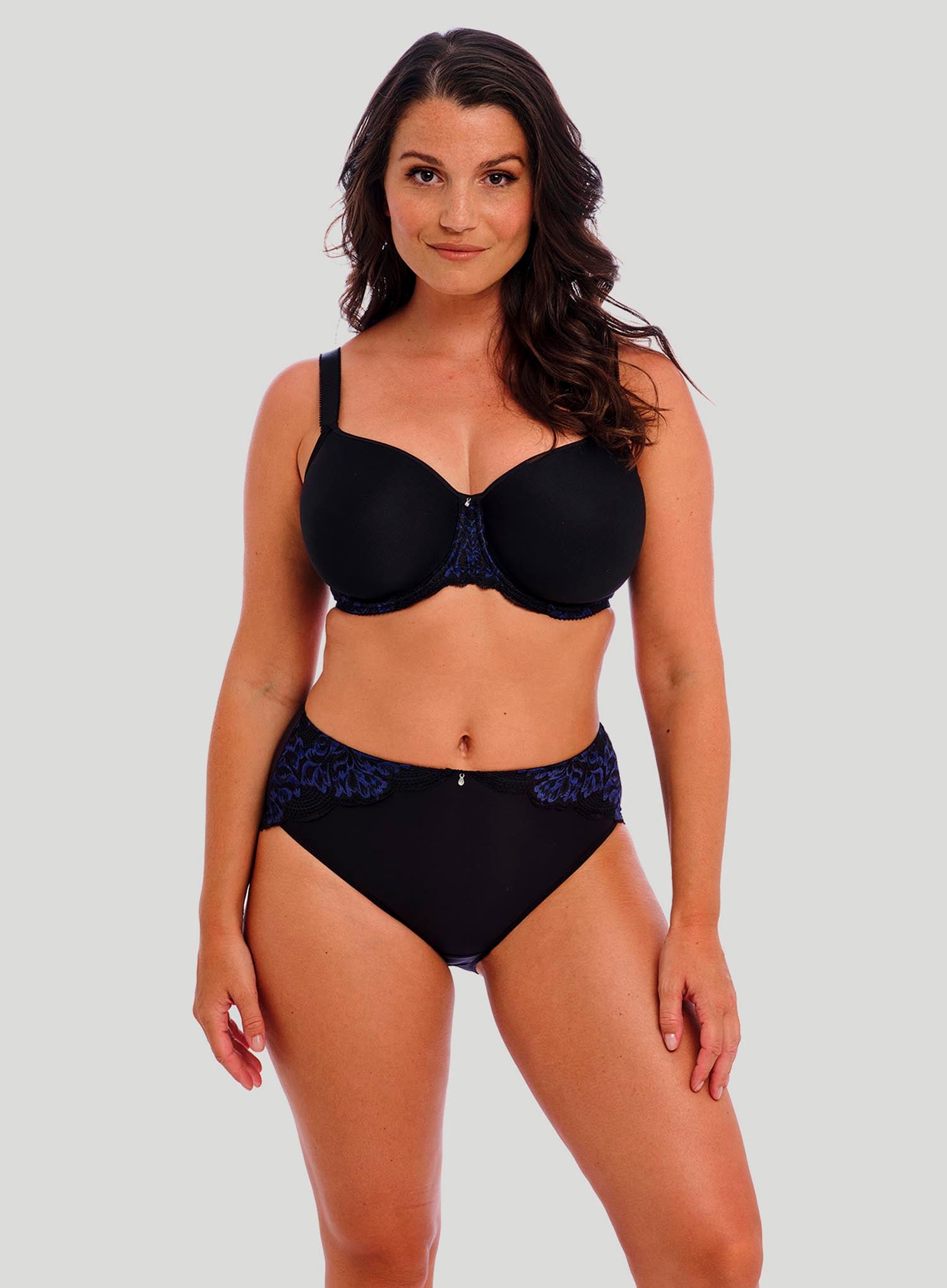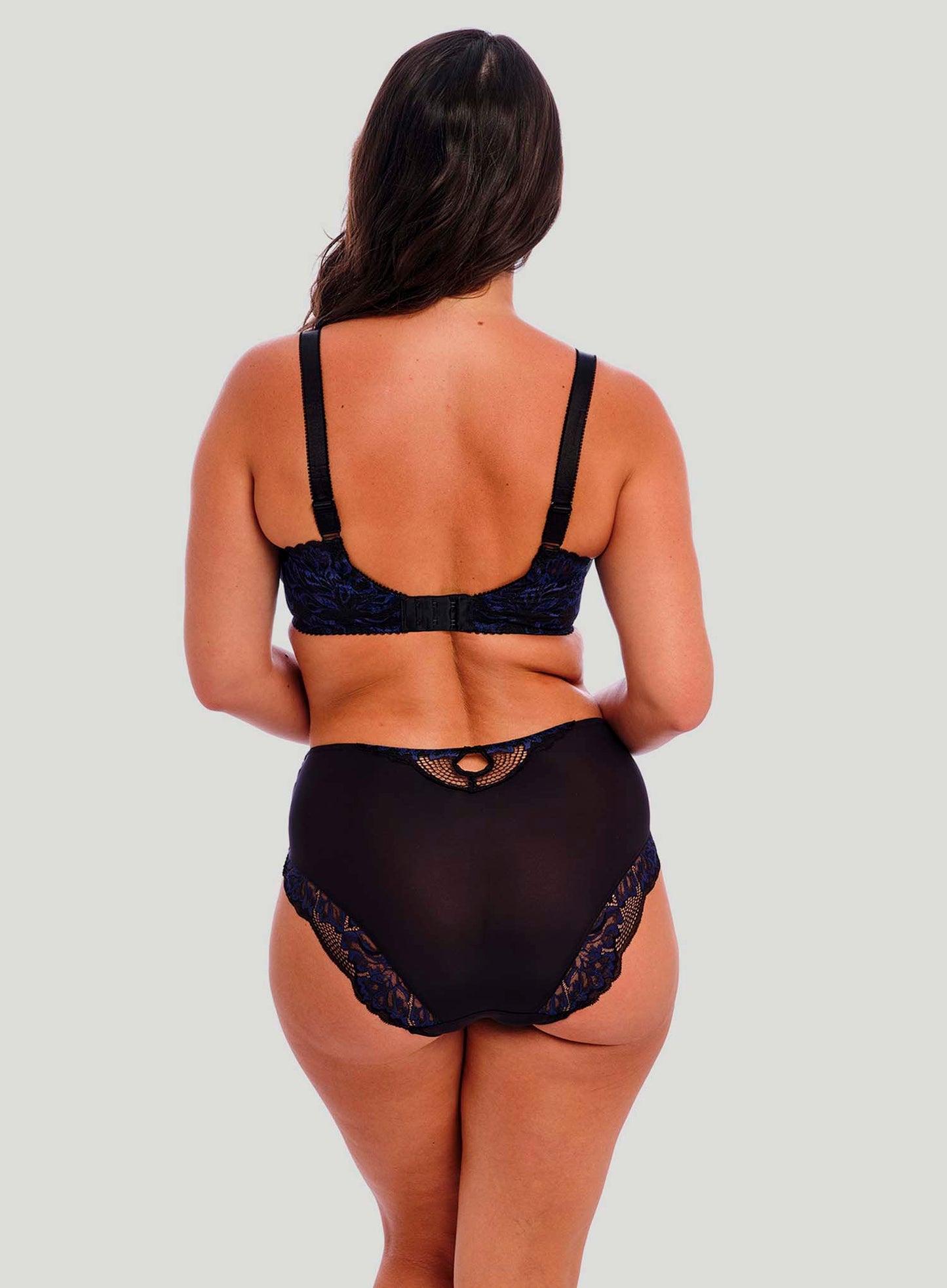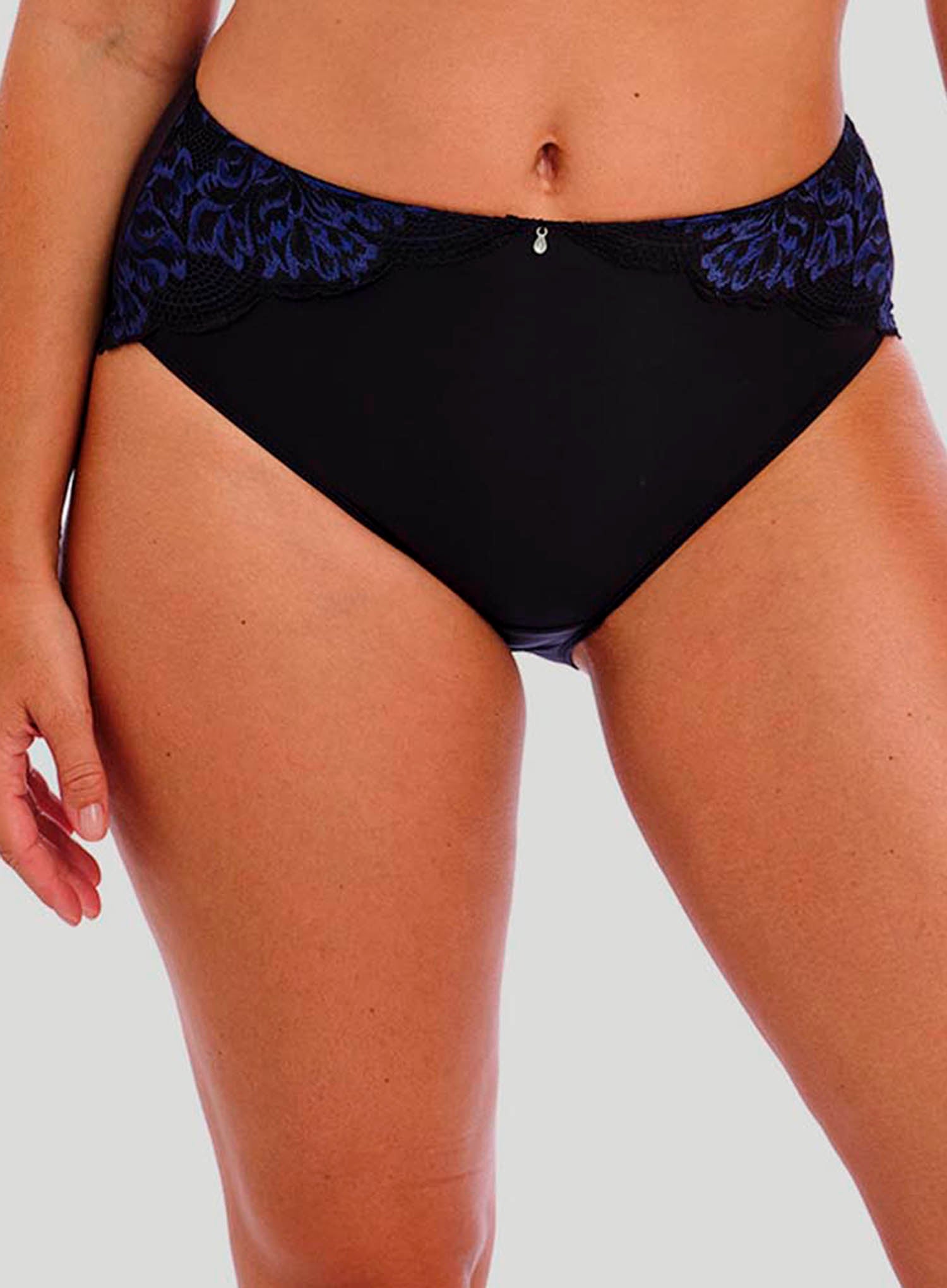 FANTASIE Emmaline Full Brief Midnight is a welcome addition to our new season collection, as the epitome of sophistication. A new look for Fantasie, Emmaline features French Navy accents on an elegant black lace base. This fuller coverage brief features soft handle fabric and elegant lace accents that make it as elegant as it is comfortable. Indulge yourself with Emmaline.