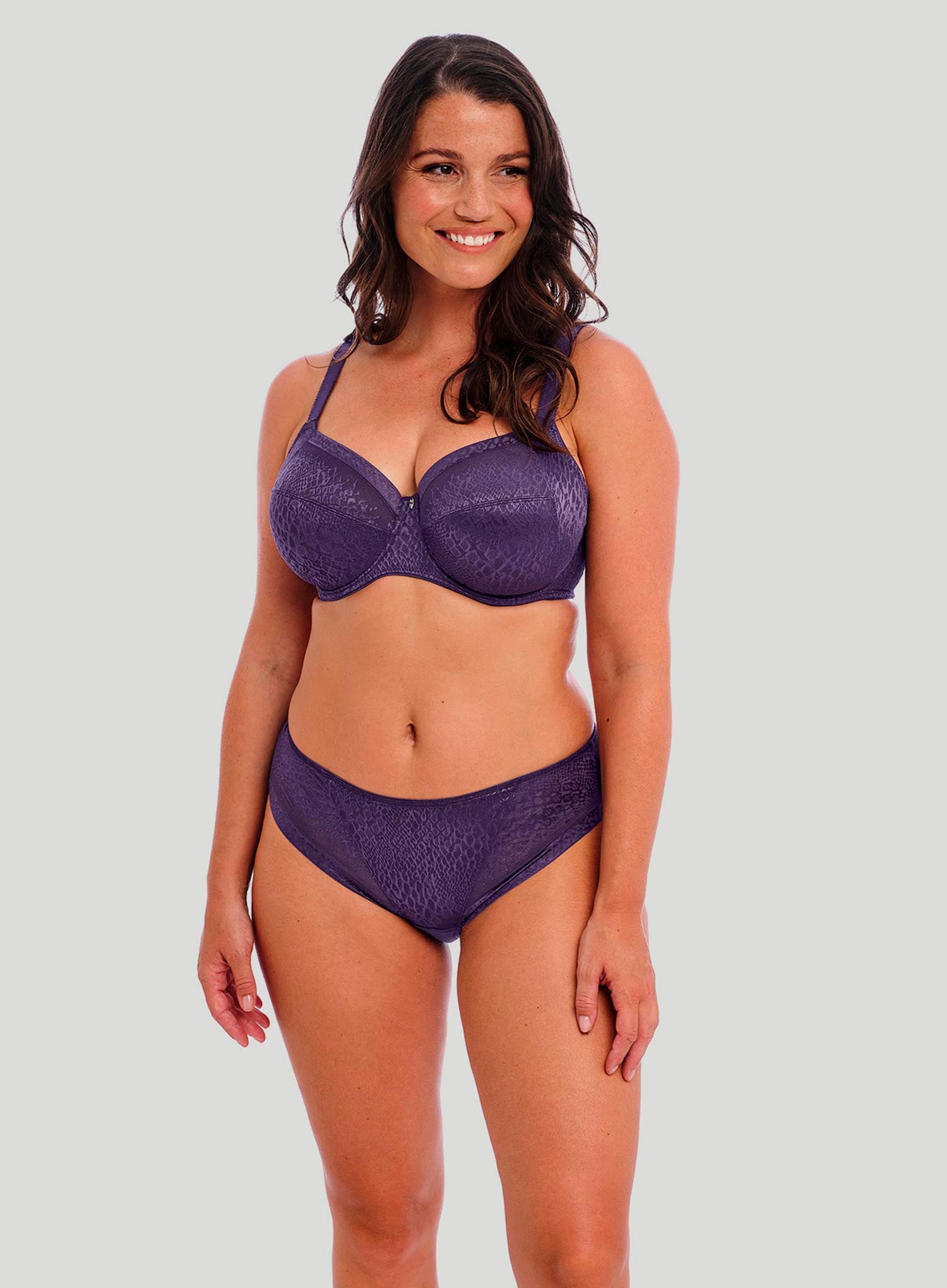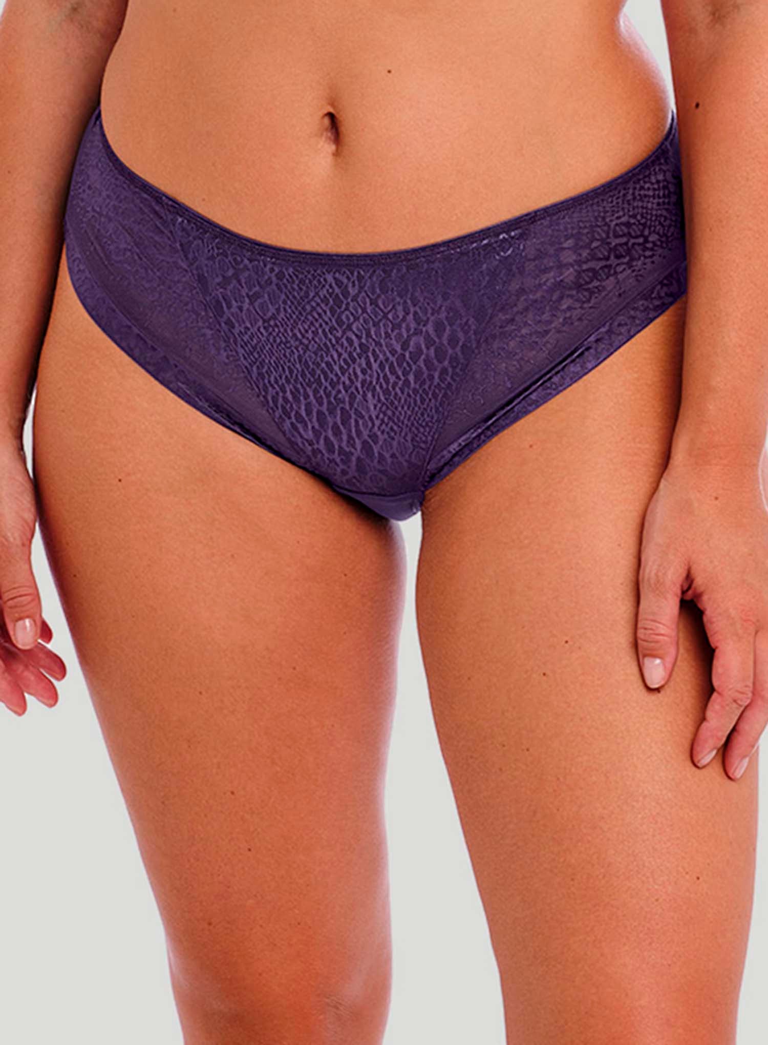FANTASIE Envisage Brief in Purple Velvet is crafted from soft handle jacquard fabric with a contemporary graphic design that’s both sexy and practical. The clean stitch-free finish will give the wearer a smooth second-skin feel for no VPL (visible panty line), and the stretch band in lace provides a flat, clean finish at the front leg.