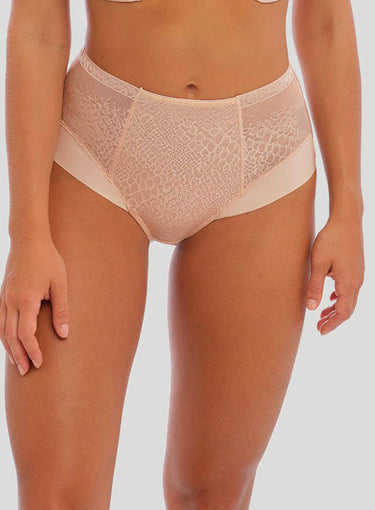 FANTASIE Envisage High Waist Brief is crafted from soft handle fabric with a contemporary graphic design that’s sexy and practical. The clean stitch-free finish will give the wearer a smooth second-skin feel for no VPL (visible panty line), and the stretch band in lace provides a flat, clean finish at the front leg. The lined tummy panel takes care of control and smoothing.