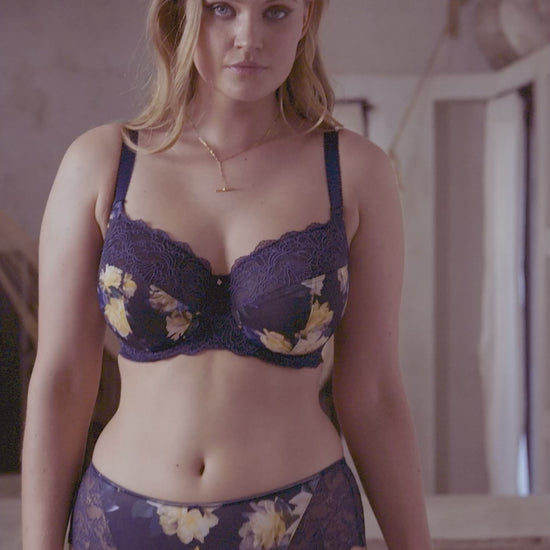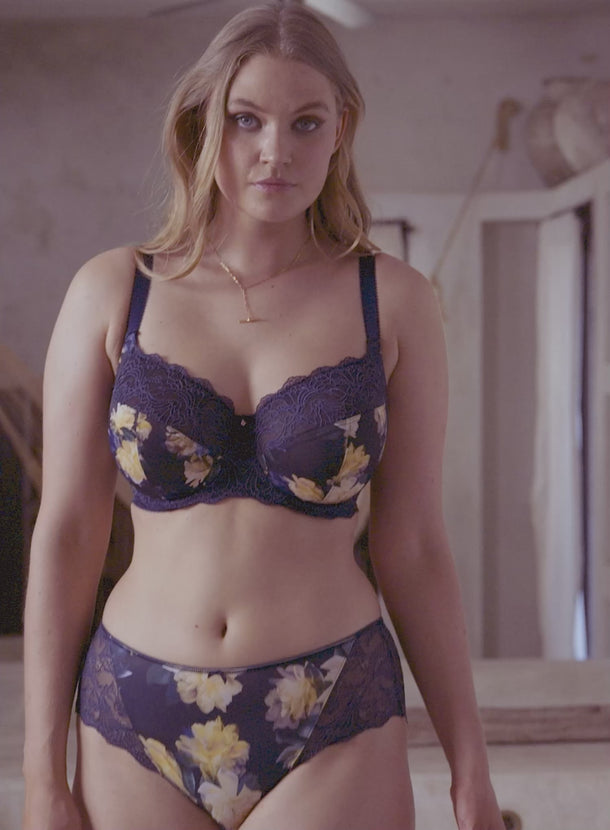 FANTASIE Lucia Underwire Side Support Bra in Navy features a bespoke floral print in buttermilk creams and lemon blooms over a navy backdrop. The ideal everyday bra that provides the ultimate in support and amazing forward projection. The beautiful design is complemented by the stretch lace, which doubles as extra support and makes it ideal for larger busts. This sophisticated collection is perfect for a summery garden look.