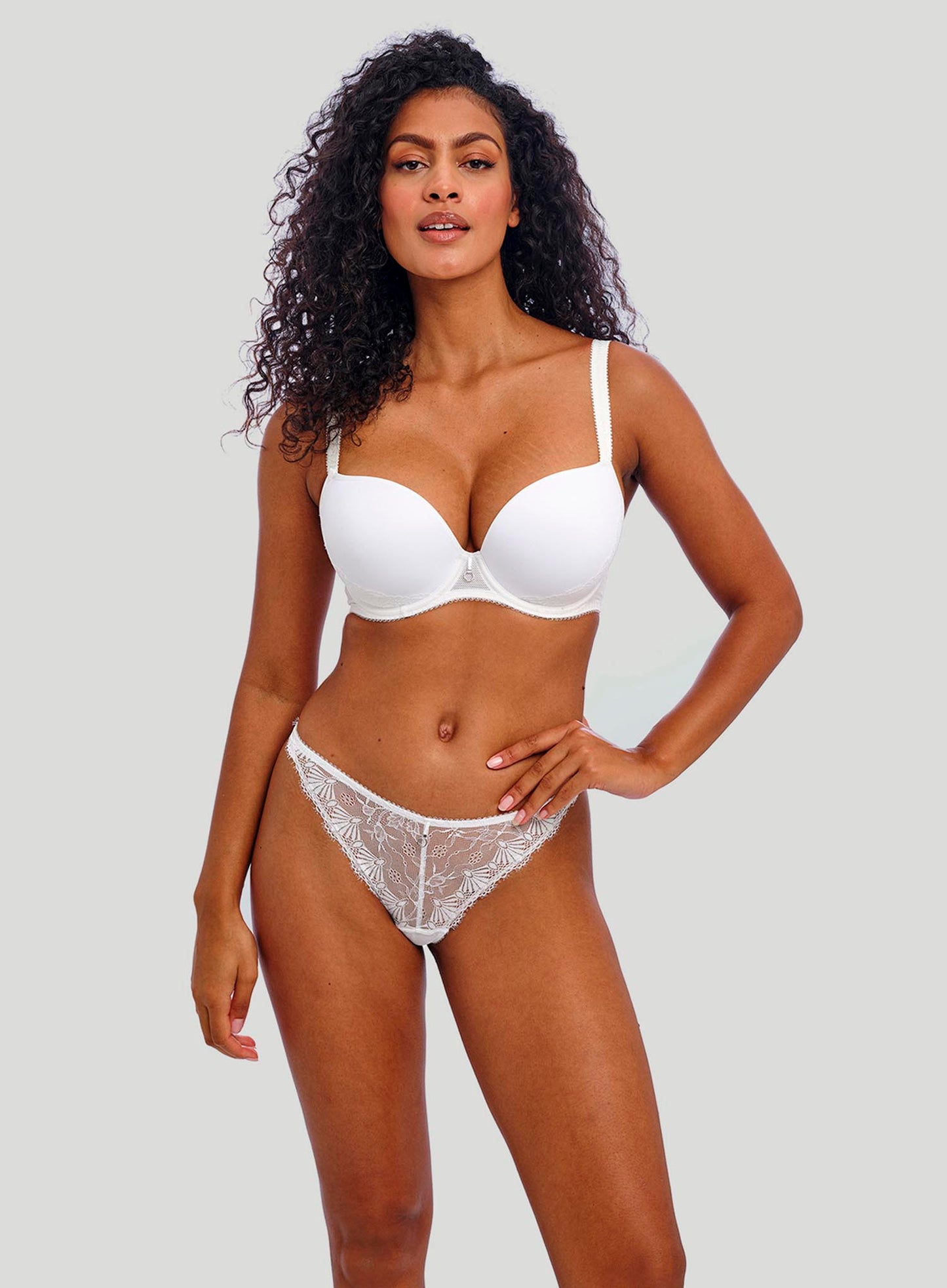 FREYA Fascinate Thong White teals the limelight this season. Introducing in a timeless bridal-inspired White, this collection showcases exquisite floral lace with decorative eyelash edging, perfect for effortless day-to-night styling. Offering minimal coverage for a smooth, seamless look under clothing, it’s the perfect choice for those who love comfort with a touch of elegance.