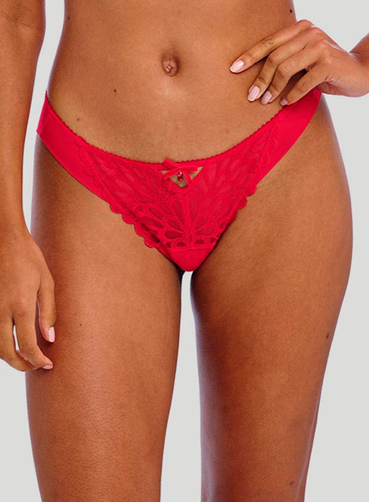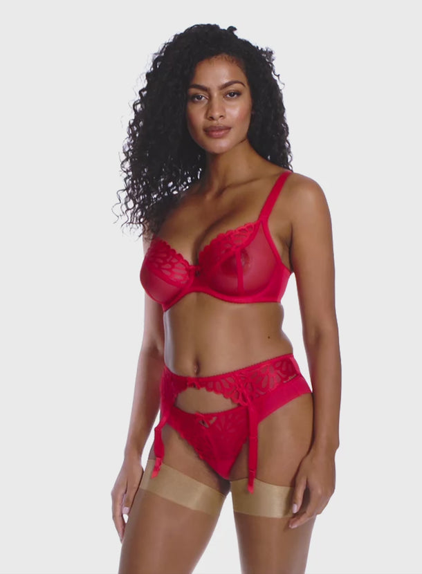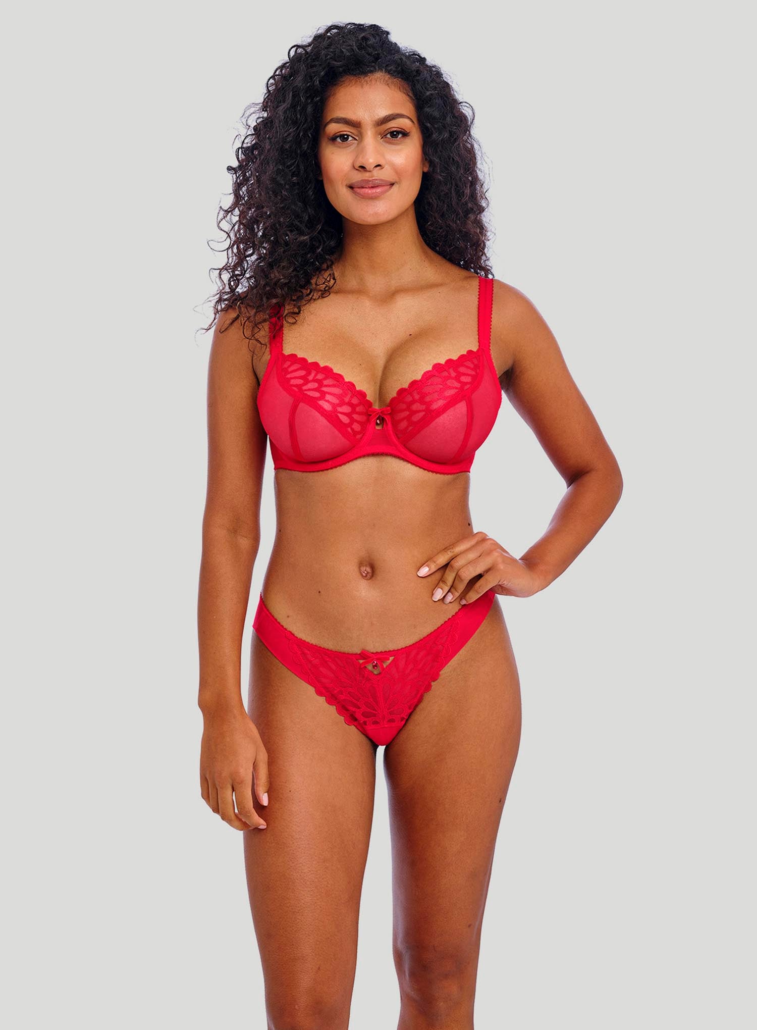 FREYA Loveland Brazilian Bombshell Chilli Red, a perfect blend of passion and allure. With their luxurious fabric and elegant design, this Brazilian is a must-have for any lingerie collection. Pair them with the Loveland Underwired Plunge Bra for a stunning, cohesive look that makes you feel confident and beautiful. Embrace your curves with this exquisite piece from DeBra's.