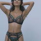 FREYA Show Off Underwire Plunge Bra in Black. Because DeBra’s team knows you have the confidence to flaunt it. Let’s just say the Show Off collection is one for the effortless romantics. Features a low centre front for a plunging neckline, embroidery through the top cup with a floral and love heart design. Fixed fully adjustable straps to prevent strap slippage and finished with a bow and F initial charm at the centre front.