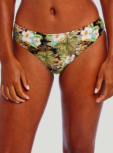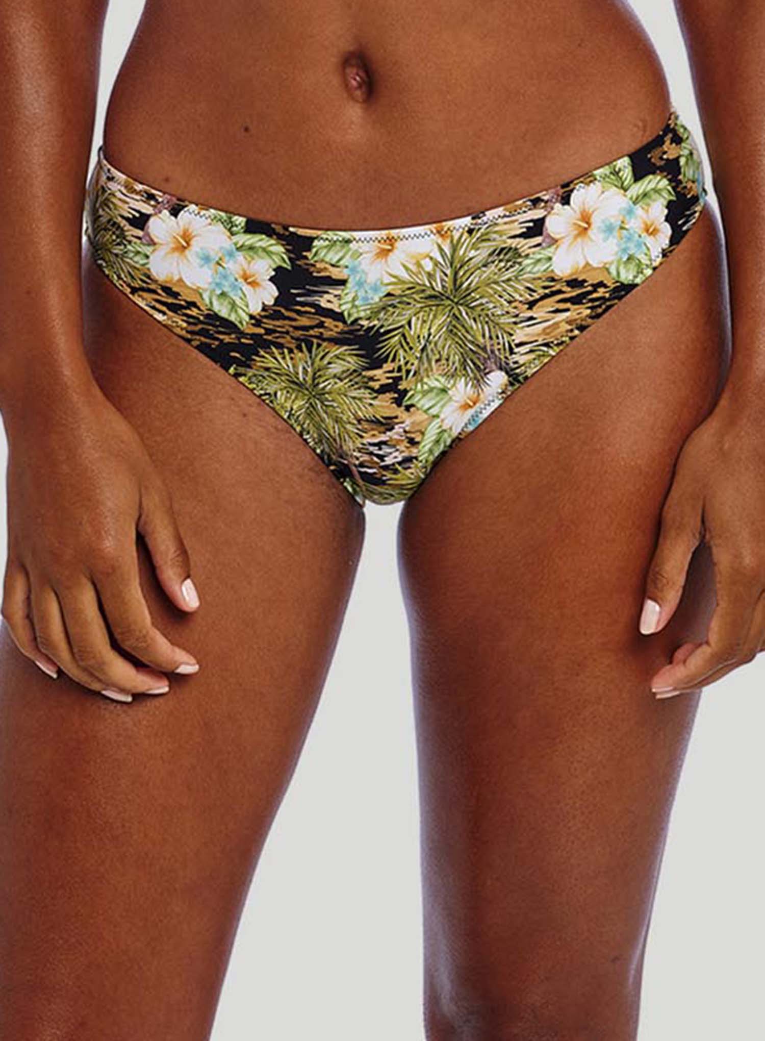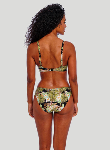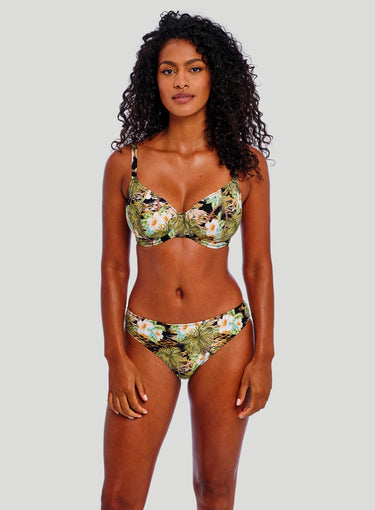 FREYA SWIMWEAR Bahama Shores Underwired Plunge Bikini Top Black is our exciting first swimwear drop of the season! Say “Aloha!” to this striking Hawaiian-inspired print, featuring sage green palms, hibiscus flowers, and splashes of aqua that blend together beautifully. Bahama Shores features lightly padded foam cups and a plunging neckline to provide the perfect amount of support and shape while enhancing cleavage for a stunning silhouette. It exudes surfer chic vibes in our most beloved shape!