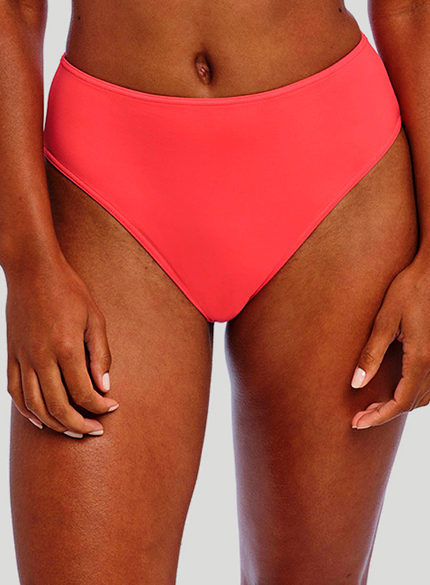 FREYA SWIM Jewel Cove High Waist Bikini Brief Plain Sunset is back in a dazzling sunset inspired shade of coral. With this classic design, poolside confidence is yours. This retro cut sits high on the waist, with a high leg cut for a flattering, elongating effect. All that’s left is to wear it and soak up some well-deserved and much-loved sun.