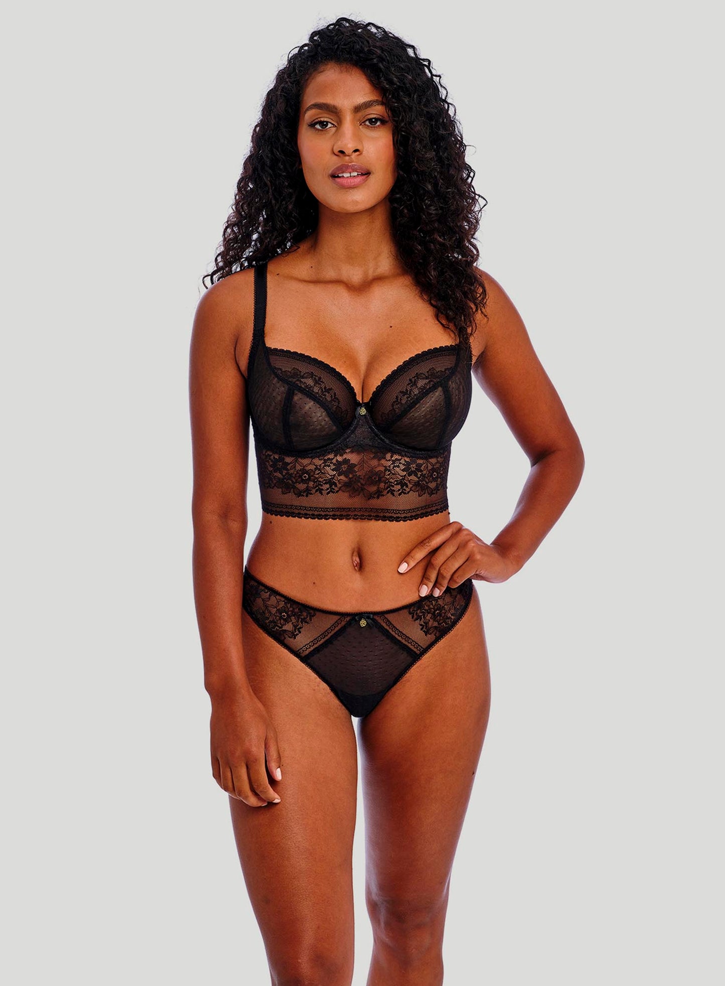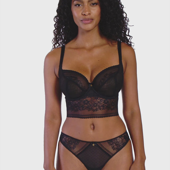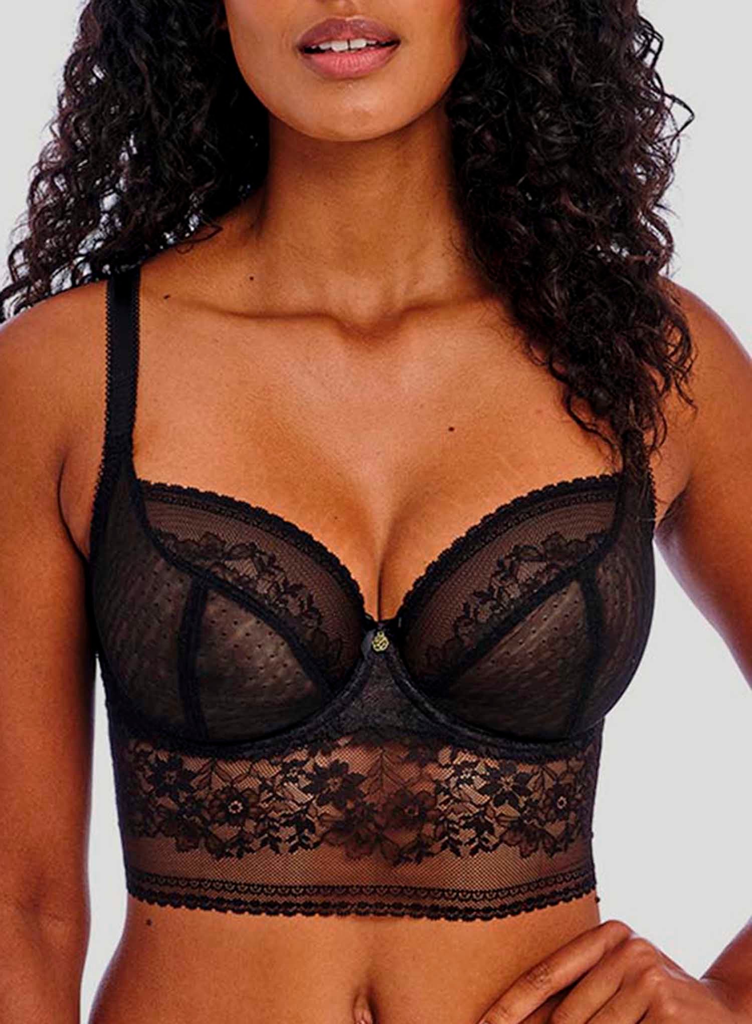 FREYA Sydnie Underwired Longline Bra Black is part of our hottest drop of the season. This seductive longline look is based on the classic Freya underwire plunge, including great side support, rounded shape and plunge without push up. Functional as it is fashionable, this shape is perfect under your plunging necklines, also featuring adjustable straps to prevent slippage. Pretty stretch floral lace adorns the body, making for the perfect under or daring outer wear look. Sydnie has us excited for this warmer weather – how about you?