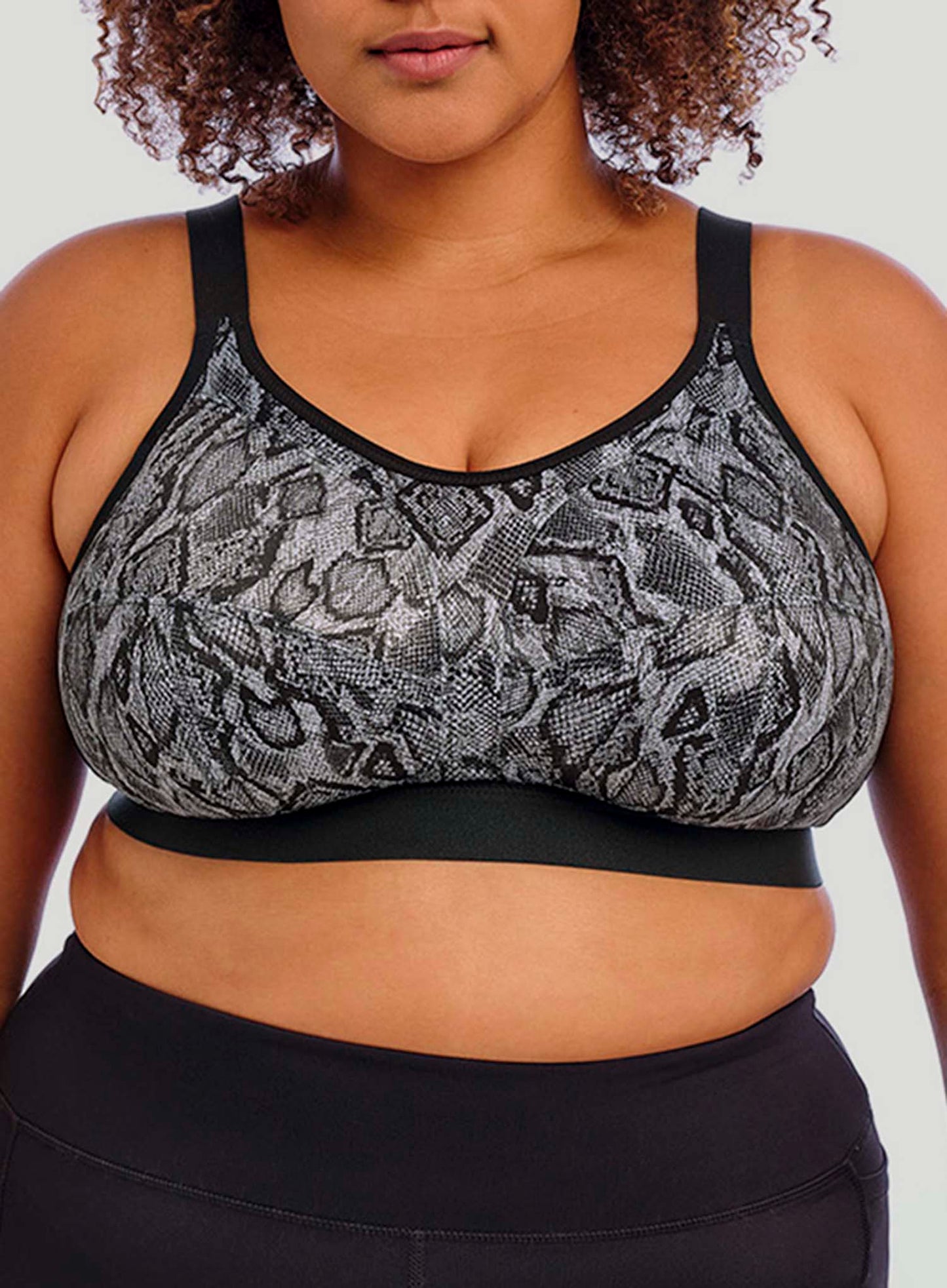 GODDESS Sports Bra Non-Wired Black Snake is where fashion, fit, and function come together to redefine your workout wardrobe. Designed to deliver incredible support without the need for wires, this soft cup sports bra features encapsulating cups that shape and hold the bust, reducing movement during low to medium impact activity. The non-stretch, anti-bacterial lining helps maintain freshness, while the moisture-wicking stretch outer fabric keeps you cool and dry. A wide, enclosed underband provides all-day comfort and anchorage, and fully adjustable padded straps ensure the perfect fit without digging in. Finished in a sleek monochrome colourway, this bra proves that performance wear can be both supportive and stylish—making every workout feel just that little bit better.