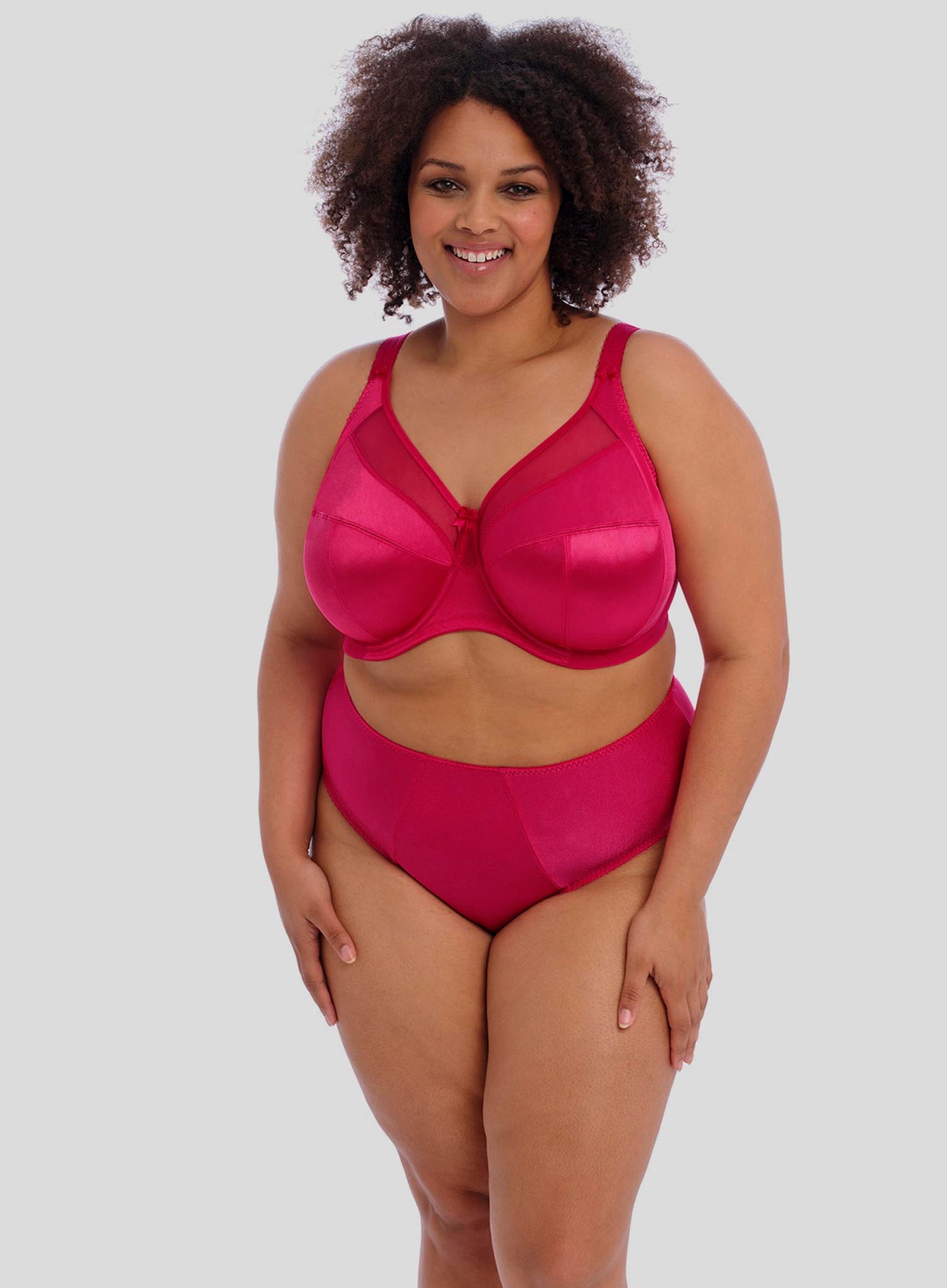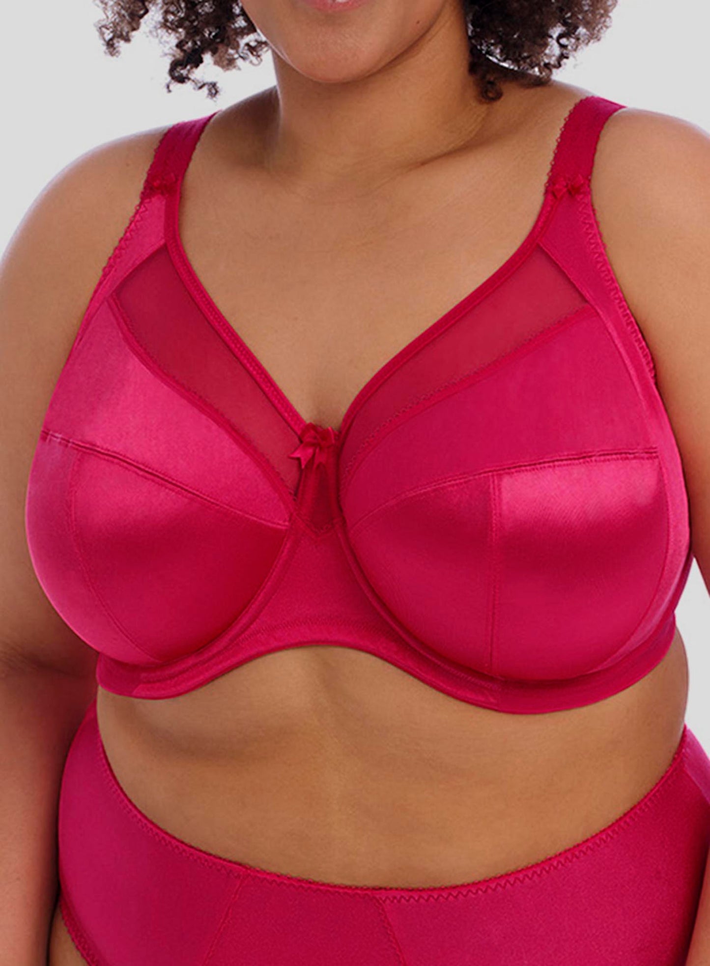 GODDESS Keira Underwired Bra in Hot Pink is the perfect mix of femininity and sophistication. Time to add an air of elegance to your day with the ultra-supportive Keira.  DeBra’s Fitting Consultants’ go-to bra is the Keira collection, combining support with style for our fuller-figured and curvy customers. The sheer top cups with a V-neck plunge shape provide a lighter look to verify your flattering neckline. Dependent on size, the Keira comes with two or three rows of hooks and eyes and is finished with a delicate bow at the centre front to complete this stylish yet functional design.