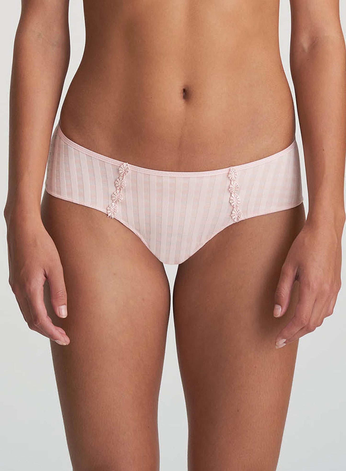 MARIE JO Avero hot pants have an elegant cut in the front, similar to the Rio briefs and stop mid-bottom. These hot pants have a low rise, super on trend and great under clothing. Completely opaque with two rows of signature Avero flowers in the front, cute and comfortable!