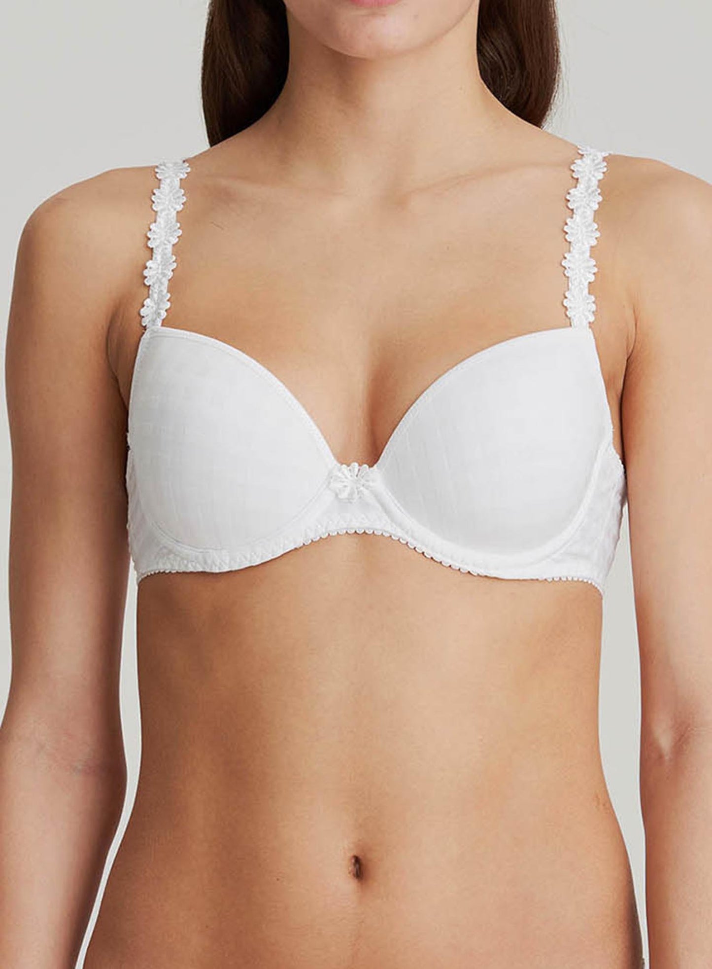MARIE JO Avero Padded Plunge Bra is the epitome of class and style. This pre-formed padded plunging shaped bra decorated with Marie Jo's signature daisies on the straps will leave you feeling comfortable, sexy, and cute all day long. The shoulder straps offer the flexibility of wear enabling you to choose between wearing around the neck or over the shoulders. If you are looking for a classic shaped bra with a stylish look, you can’t go past the Avero series in this classic White shade.