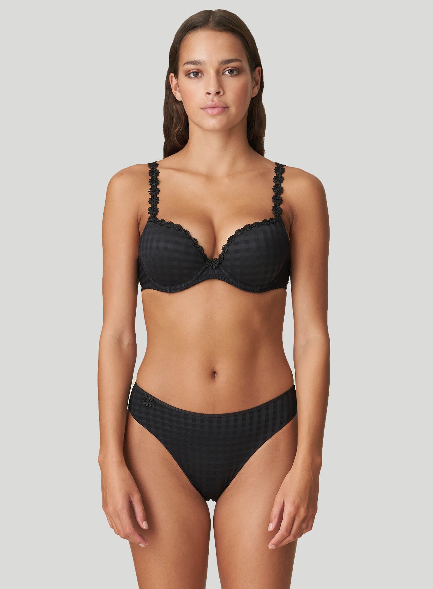 MARIE JO Avero Push Up Bra in Black is a pre-formed padded bra with a fresh, youthful look. Featuring the signature Marie Jo Avero detailed straps, this is a must have summer look! The shoulder straps offer the flexibility of wear enabling you to choose between wearing around the neck or over the shoulders. If you are looking for a classic balcony bra with a stylish look, you can’t go past the Avero series.