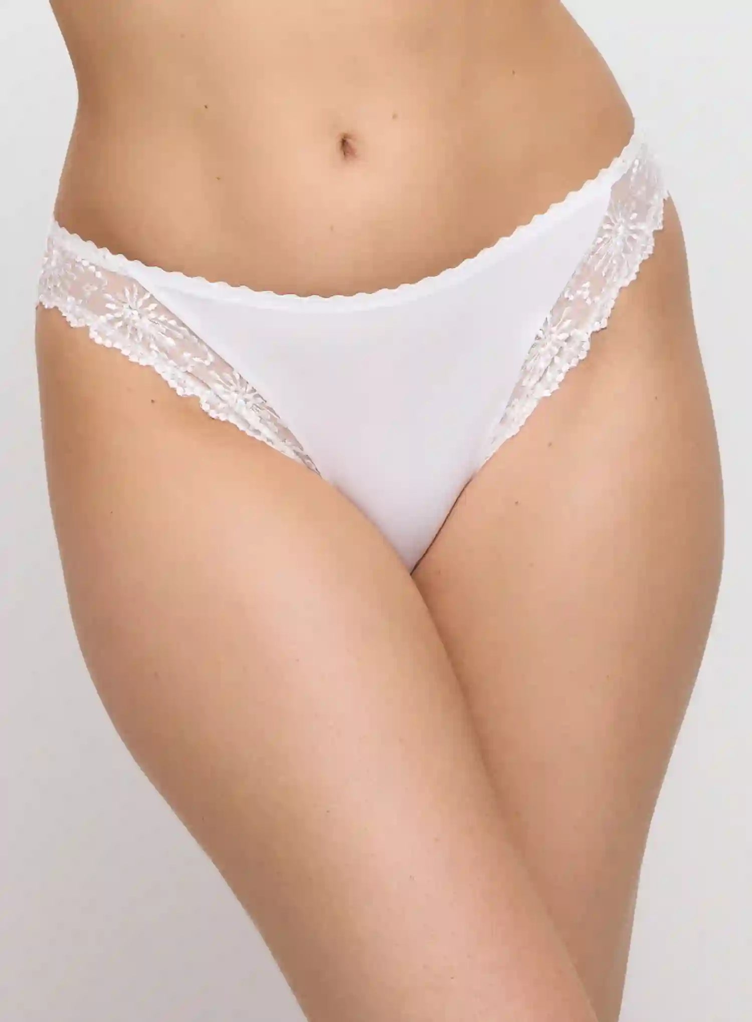 MARIE JO Jane Italian Briefs in Natural are designed to feel as beautiful as they look. With a flattering cheeky cut that sits perfectly between a rio and a thong, these briefs enhance your natural curves while offering a playful, feminine silhouette. The sheer back and delicate floral embroidery add a touch of elegance and allure.
