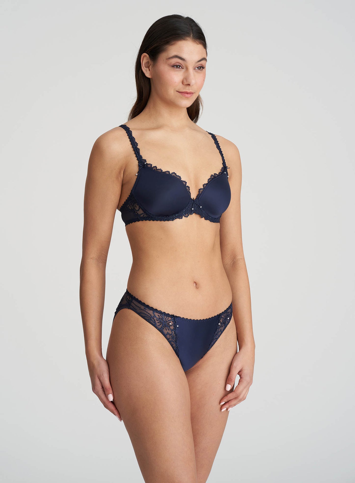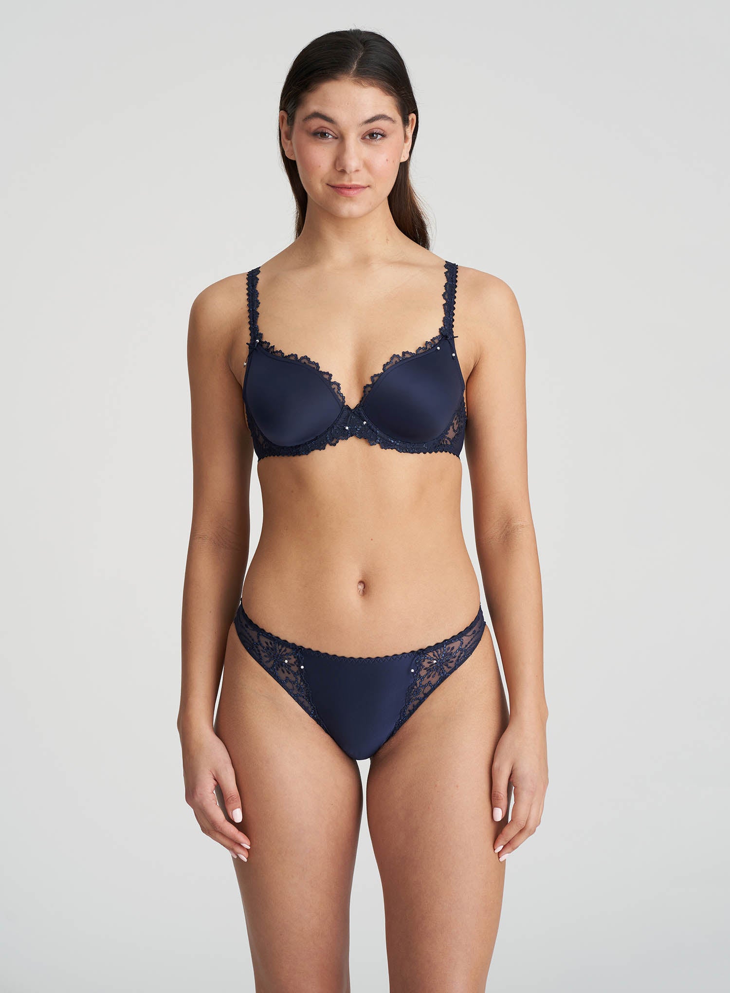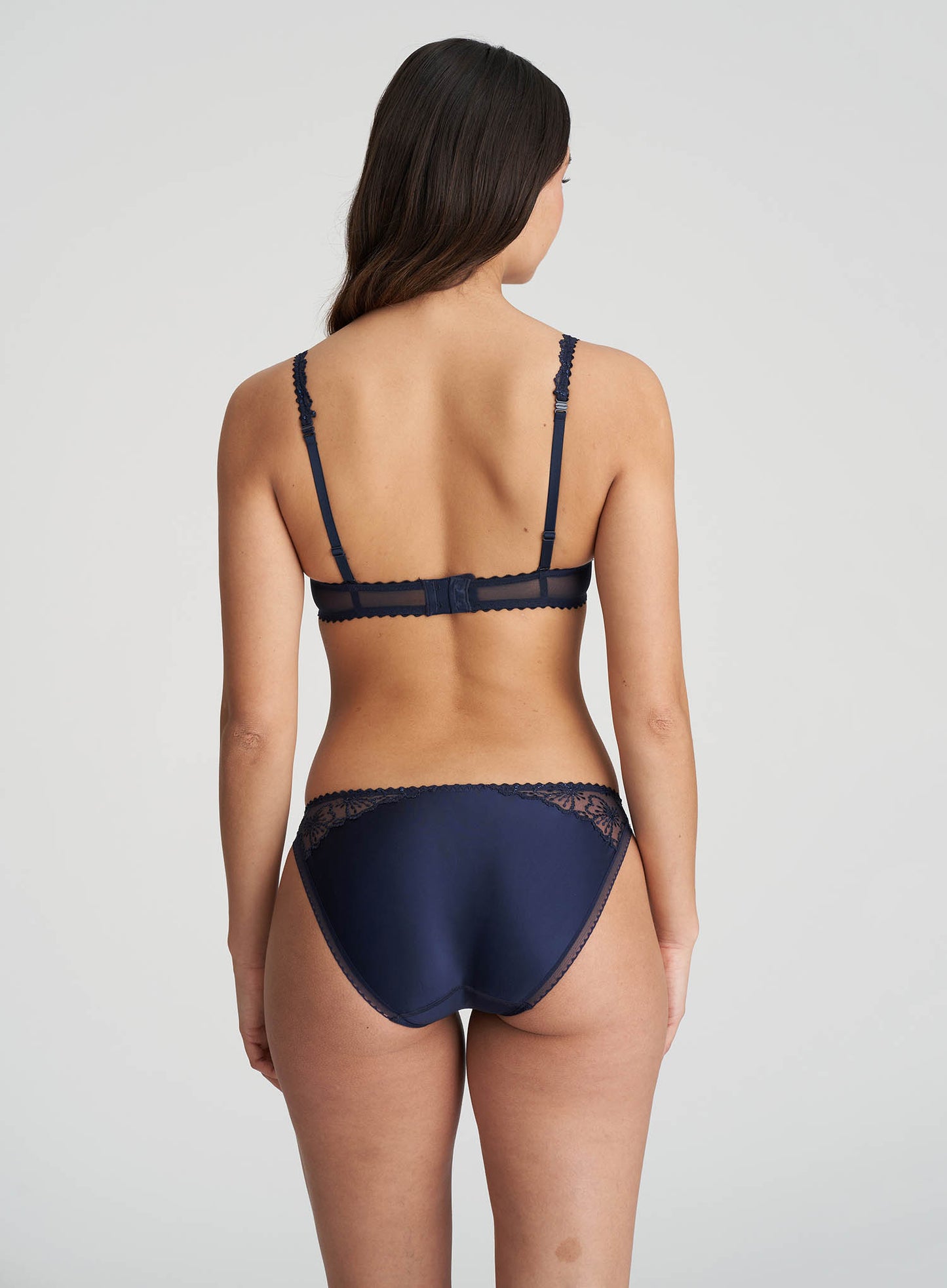MARIE JO Jane Rio Brief sees the elegant embroidery from the Jane Push Up Bra continue down onto the hips and highlights the elegant cut of this design. Crafted from ultra-light material for a barely there feel, the breathable material provides protection with modest front and back coverage.
