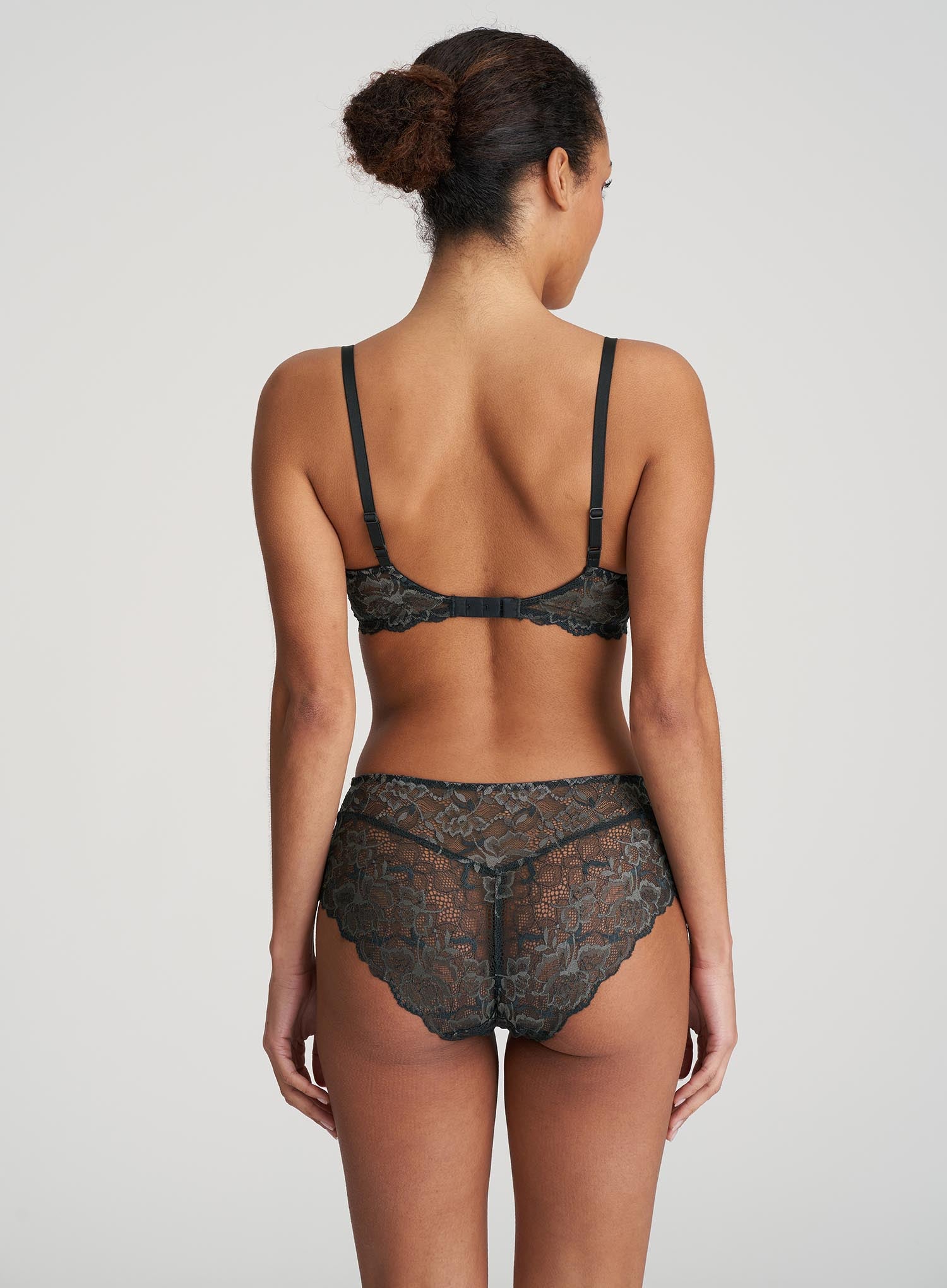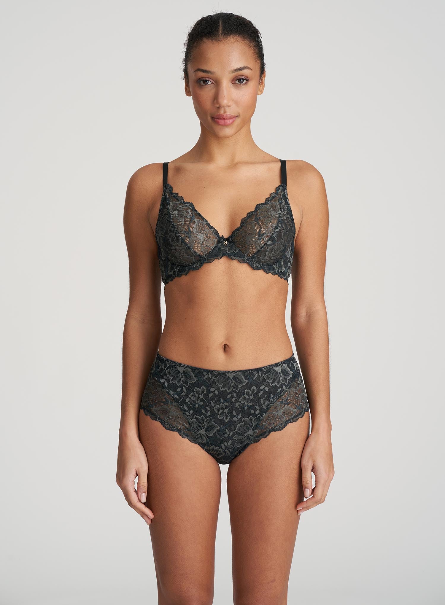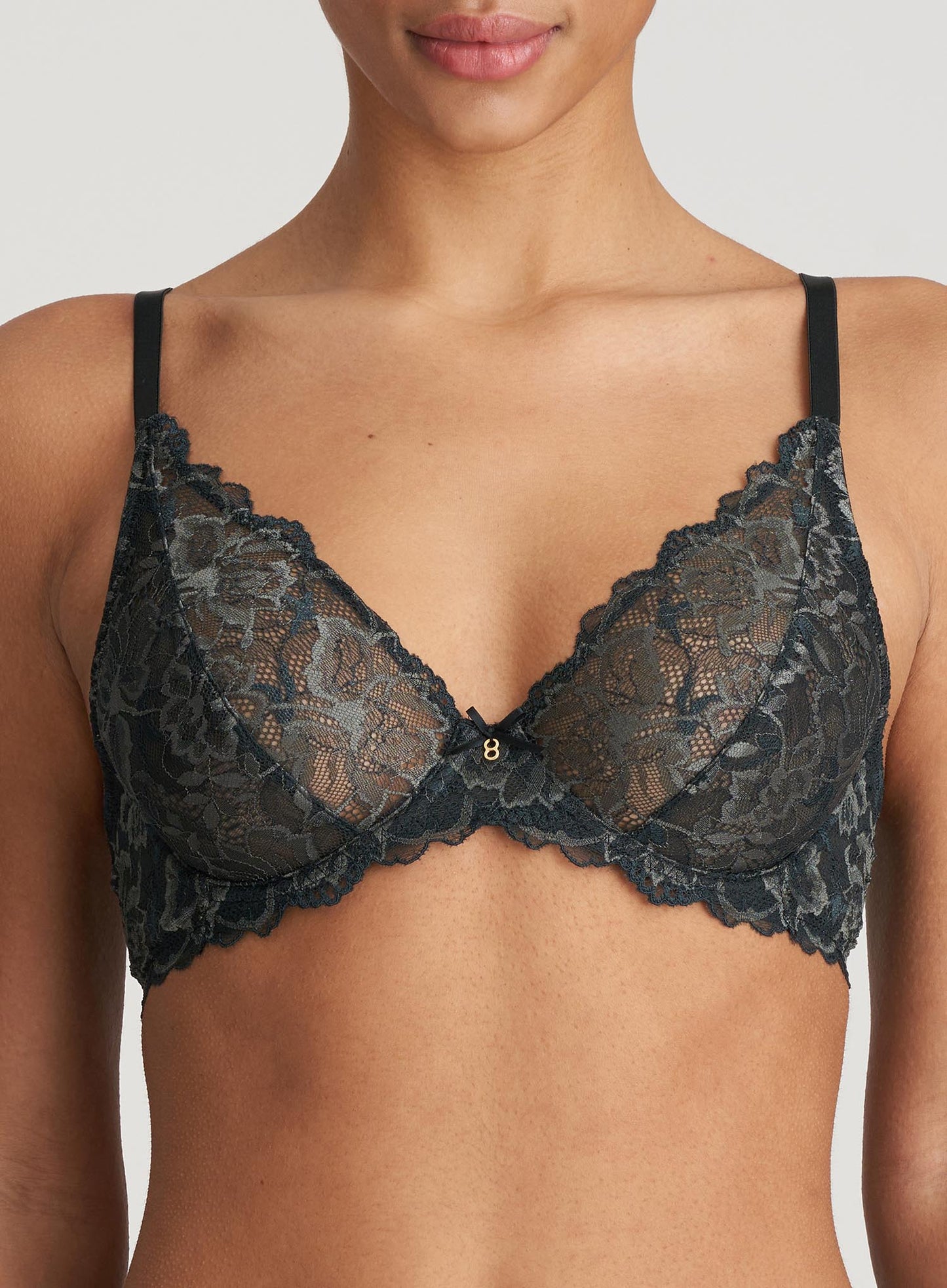 MARIE JO Manyla Plunge Bra embodies attention to detail. Featuring all over romantic lace, the featherweight material gives a luxurious second skin feel while the versatile mix of dark grey and rich khaki green ensure a versatile option, with more depth to give a flattering effect on any skin tone. The triangle shaped plunge cups visually enhance the silhouette and provide beautiful cleavage to create and classy and stylish look.