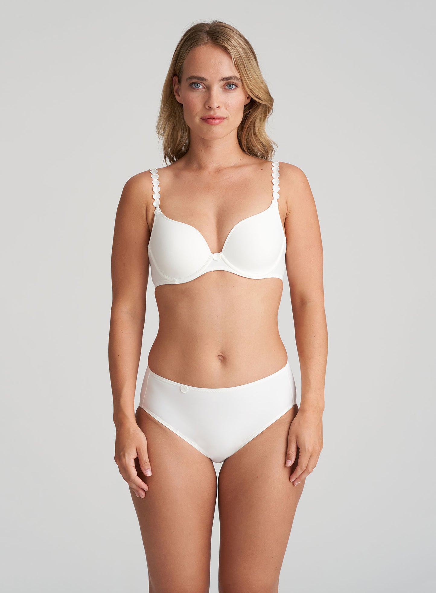 MARIE JO Tom Padded Heart Shape Bra is now available in this beautiful core Natural colour. Cut high on the upper cups and plunging into a deep neckline between the breasts, the Marie Jo Tom Padded Heart Shape Bra is not for the light-hearted. It includes excellent coverage up the top and the sheer tulle on the back provides support and style. The straps allow flexibility of wear, as you can wear them over the shoulders or around the neck. It’s a must-have in every lingerie drawer.