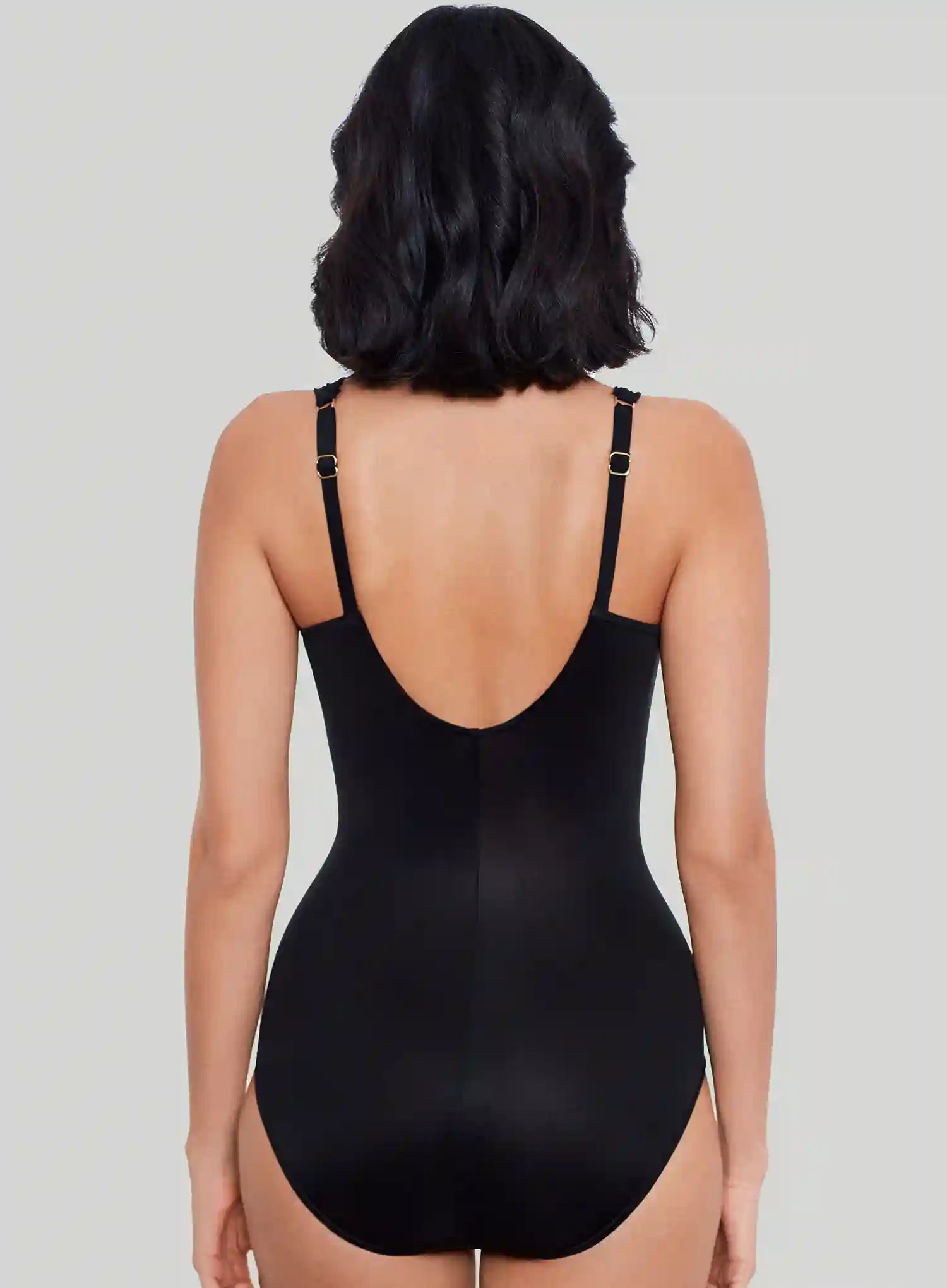 MIRACLESUIT Razzle Dazzle Siren Crossover Underwired Shaping One Piece in Black combines elegance with confidence-boosting shaping. The underwired molded cups and sweetheart neckline lift and support, while adjustable straps let you find your perfect fit.