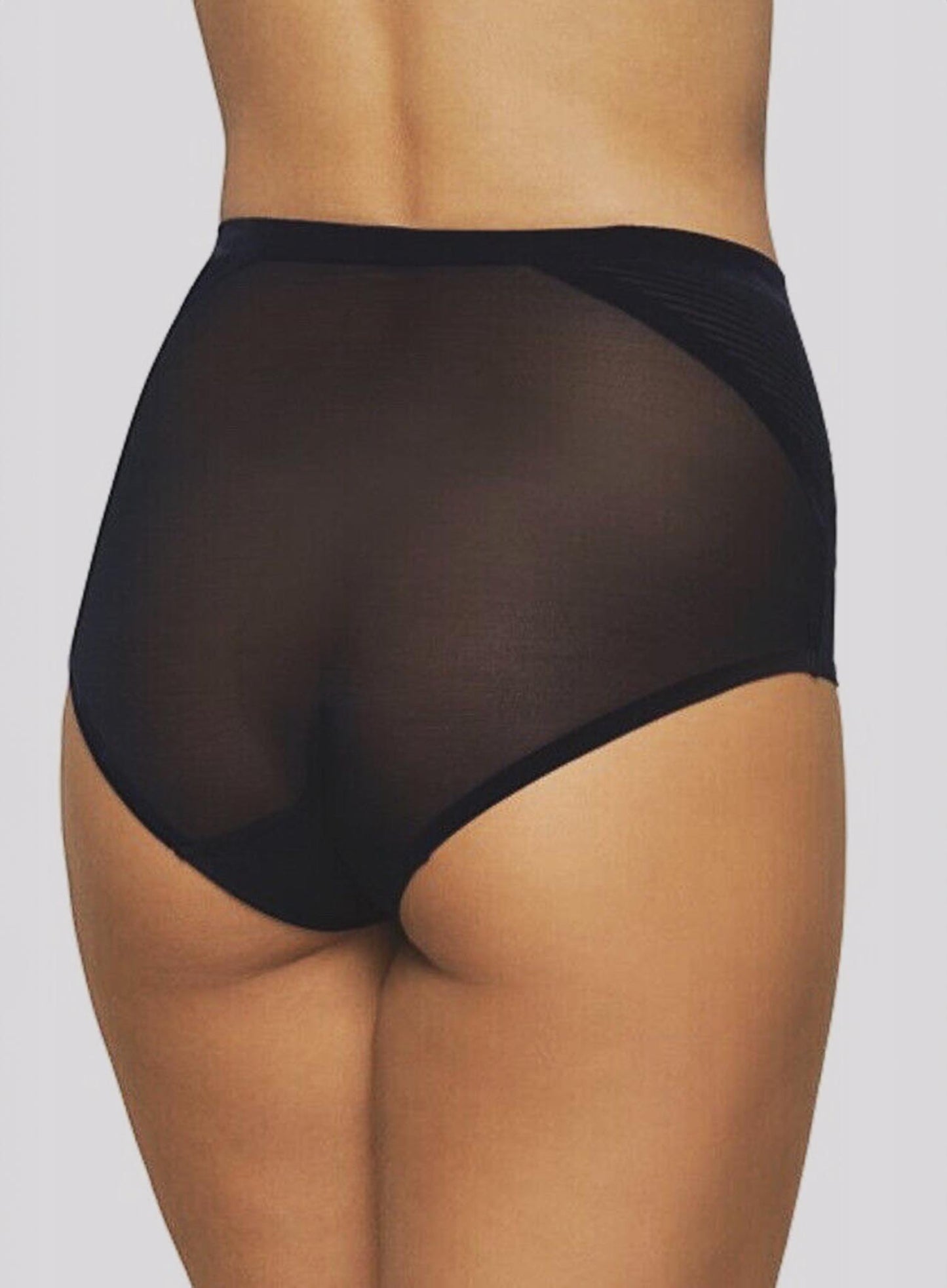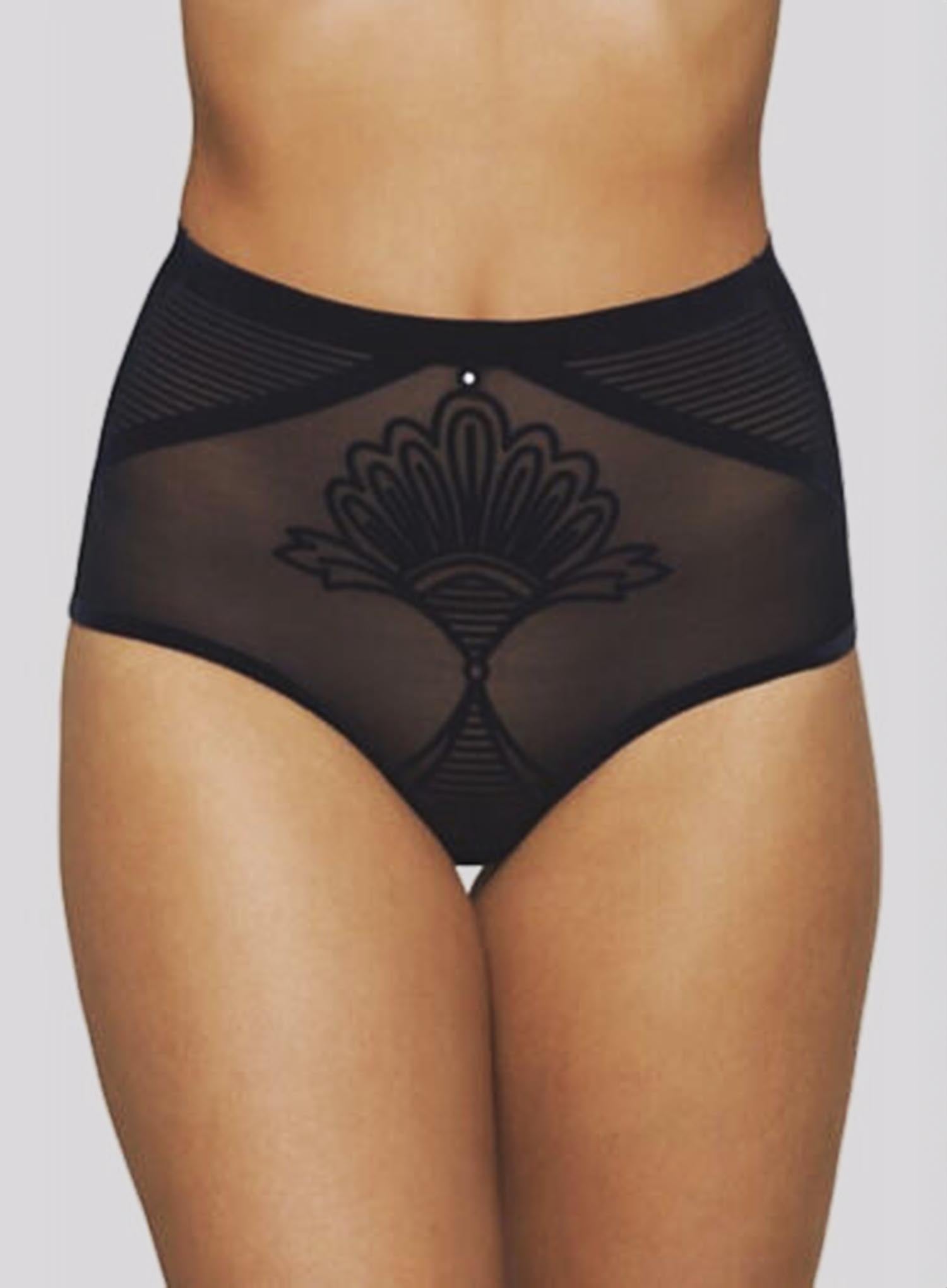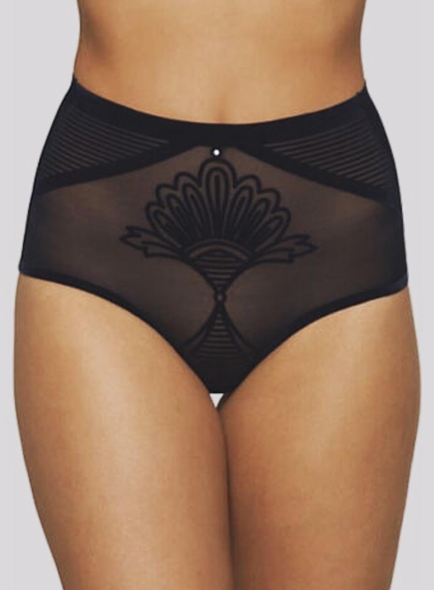 NANCY GANZ Enchante Waisted Brief Black is equal parts beautiful lingerie and powerful shapewear. Designed to provide targeted control, this brief empowers you to look and feel confident on any occasion. The innovative flocking technology ensures a smooth finish, while the intricate floral design contours your body in all the right places. The high-waisted design offers additional coverage and control, smoothing out the waistline and preventing muffin top.
