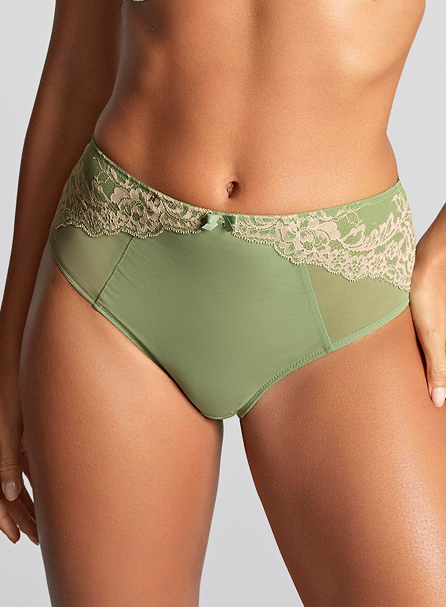 PANACHE Ana Briefs feature a stretch lace front with a smooth folded back leg for no VPL (visible panty line). The soft lace and sweet scalloped edge makes for a fresh and youthful look. The Ana Brief complements the Ana Plunge Bra. Complete your Ana set today!