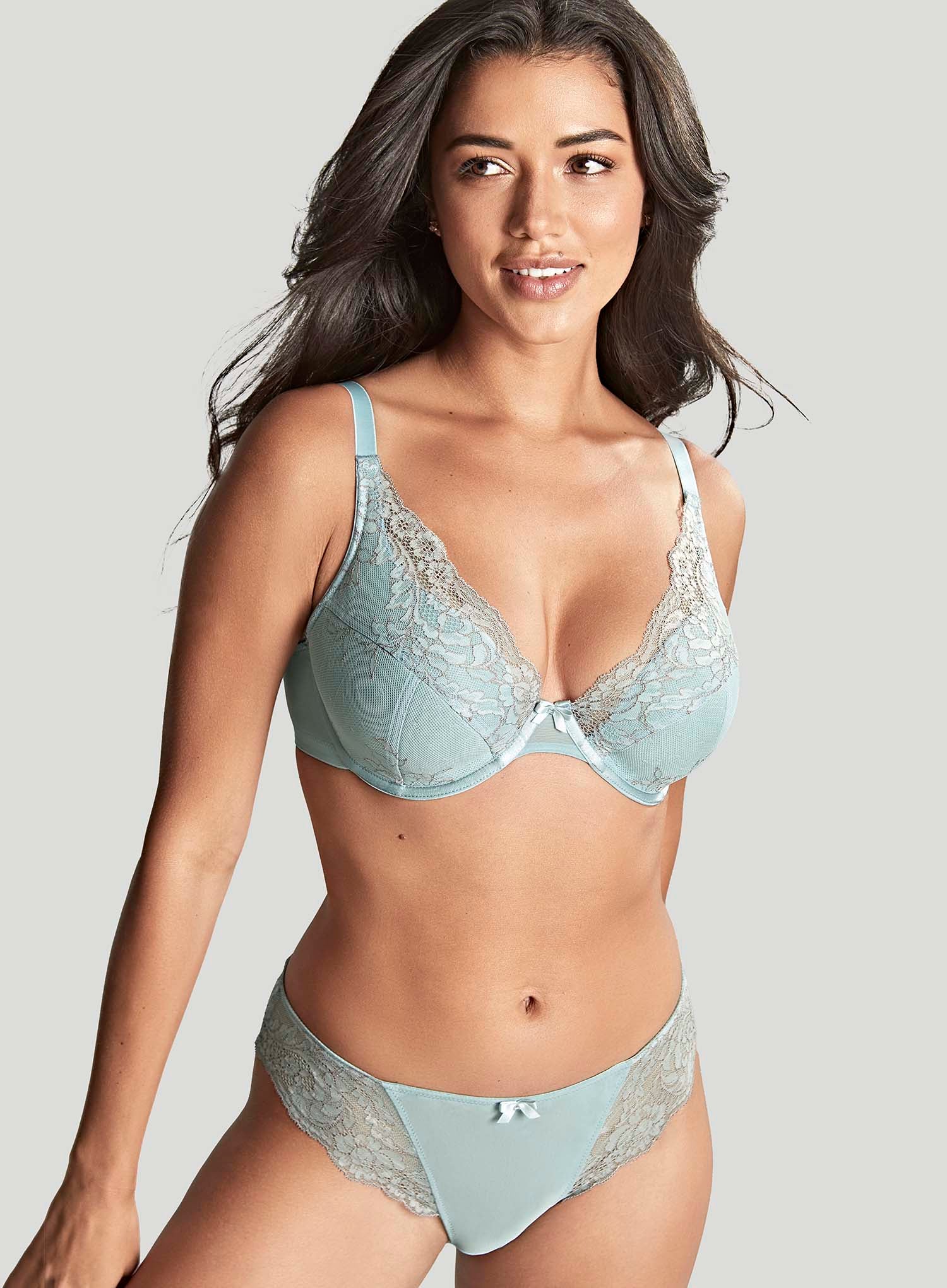PANACHE Ana High Apex Padded Plunge Bra in Blue Ash Rose makes its debut at DeBra’s! A new and exciting take on an all-time bestseller, the Ana Plunge Bra, now in a new contrasting colour way that will perfectly complement any Spring wardrobe. With a new higher neckline and padded cups, this design makes for an even smoother silhouette than ever before, up to a J cup! The underwire sits even lower than the classic Ana for a flattering, deeper plunge. Take your look to the next level with Ana.