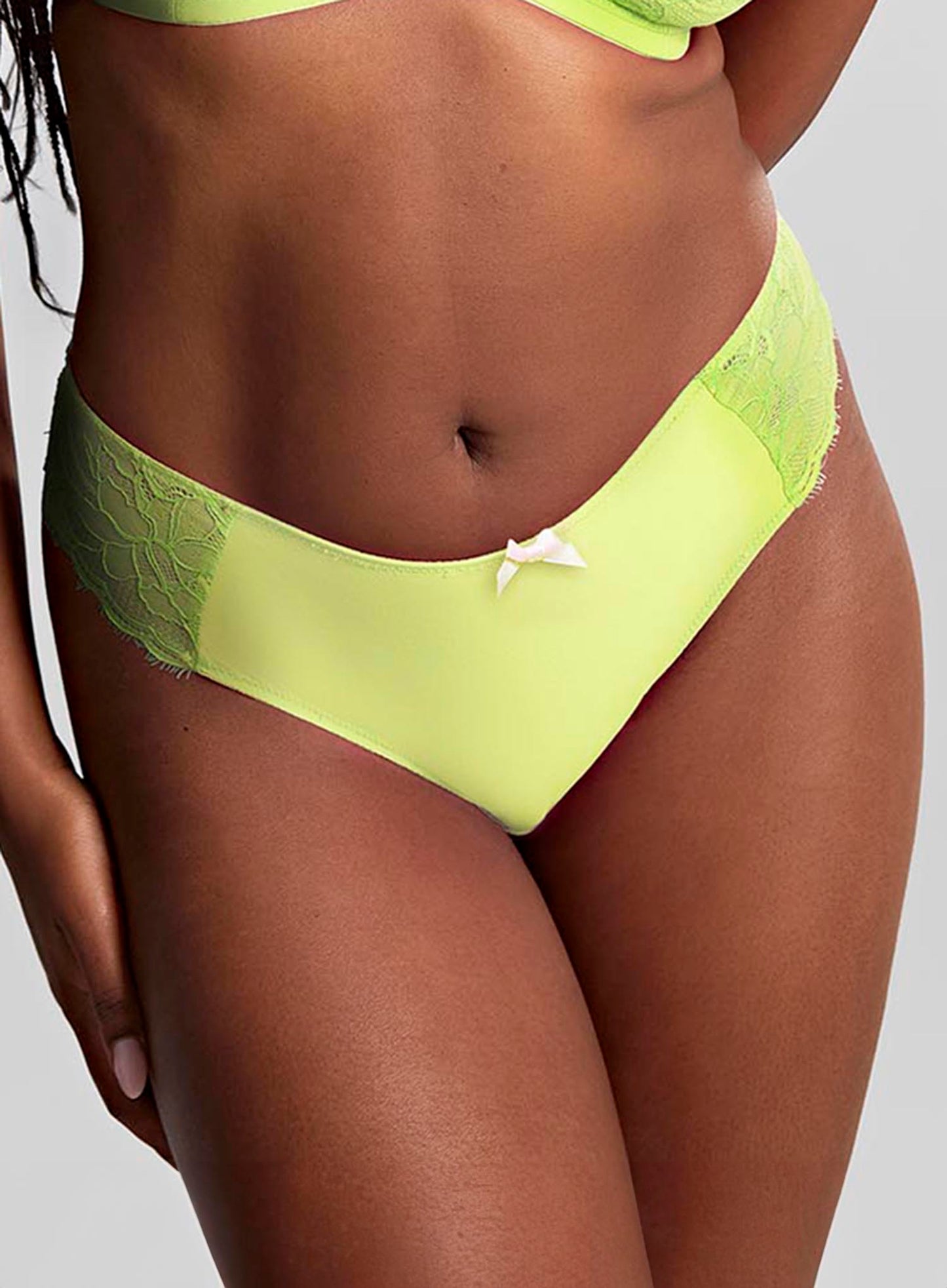 PANACHE Cherie Brazilian in Neon Lime Lime is coming at you in a zesty burst of colour that will add an air of flirtatious fun to your lingerie drawer! Authentically Panache but a little unexpected, this is an exciting new drop that features soft handle fabric and gorgeous eyelash lace. What’s more? Cherie is consciously developed, using recycled yarns in its elements. Feel bright, bold and beautiful in Cherie!
