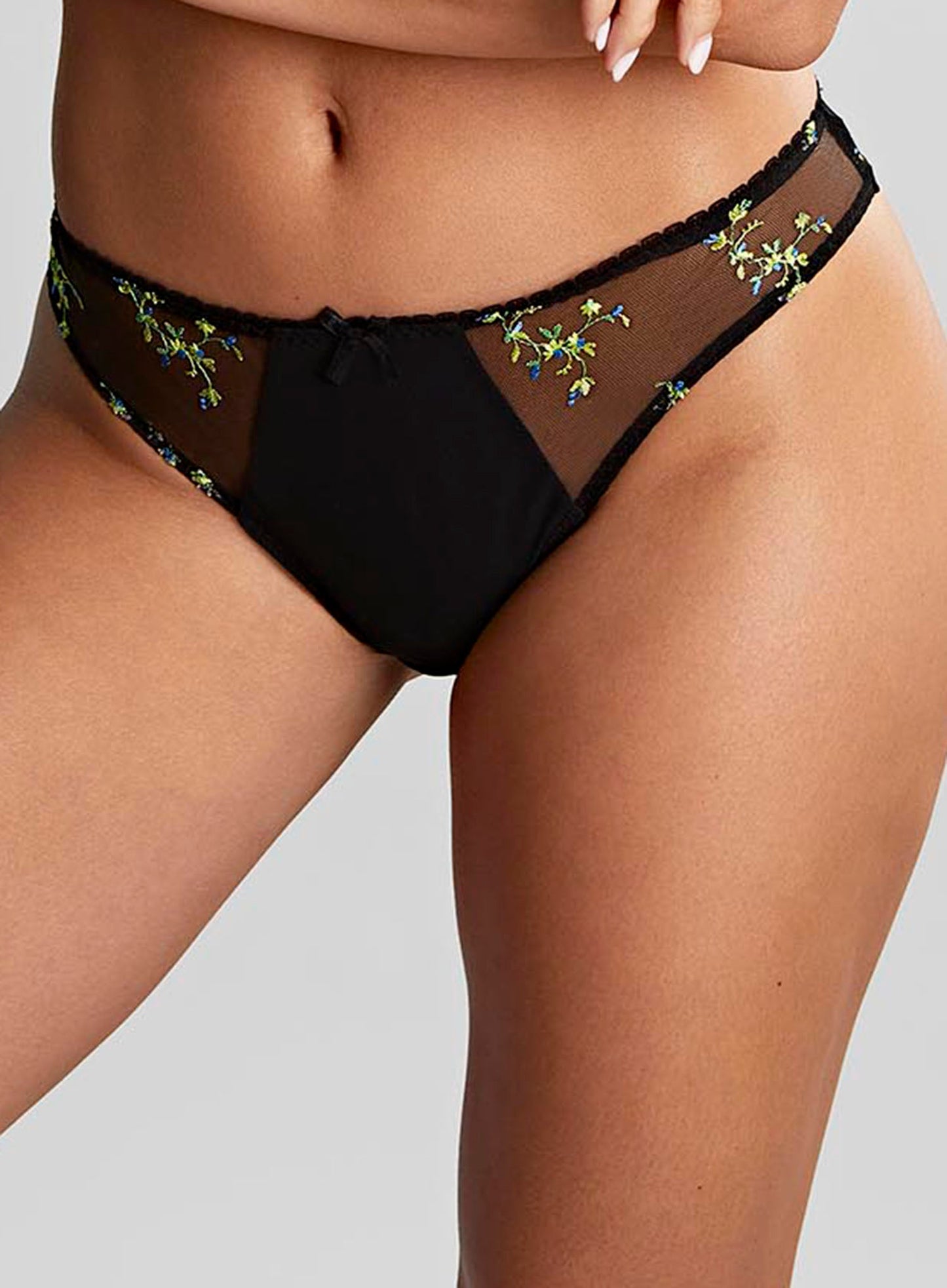 PANACHE Meadow Brazilian Brief in Black is a result of passion, style and expertise. Designed to make you feel amazing, this enchanting new collection will transport you straight to the springtime, featuring embroidery bursting with colour on a delicate black mesh base. Embroidered side panels and lined mesh front panels in a cheeky cut make for a sexy, comfortable fit.