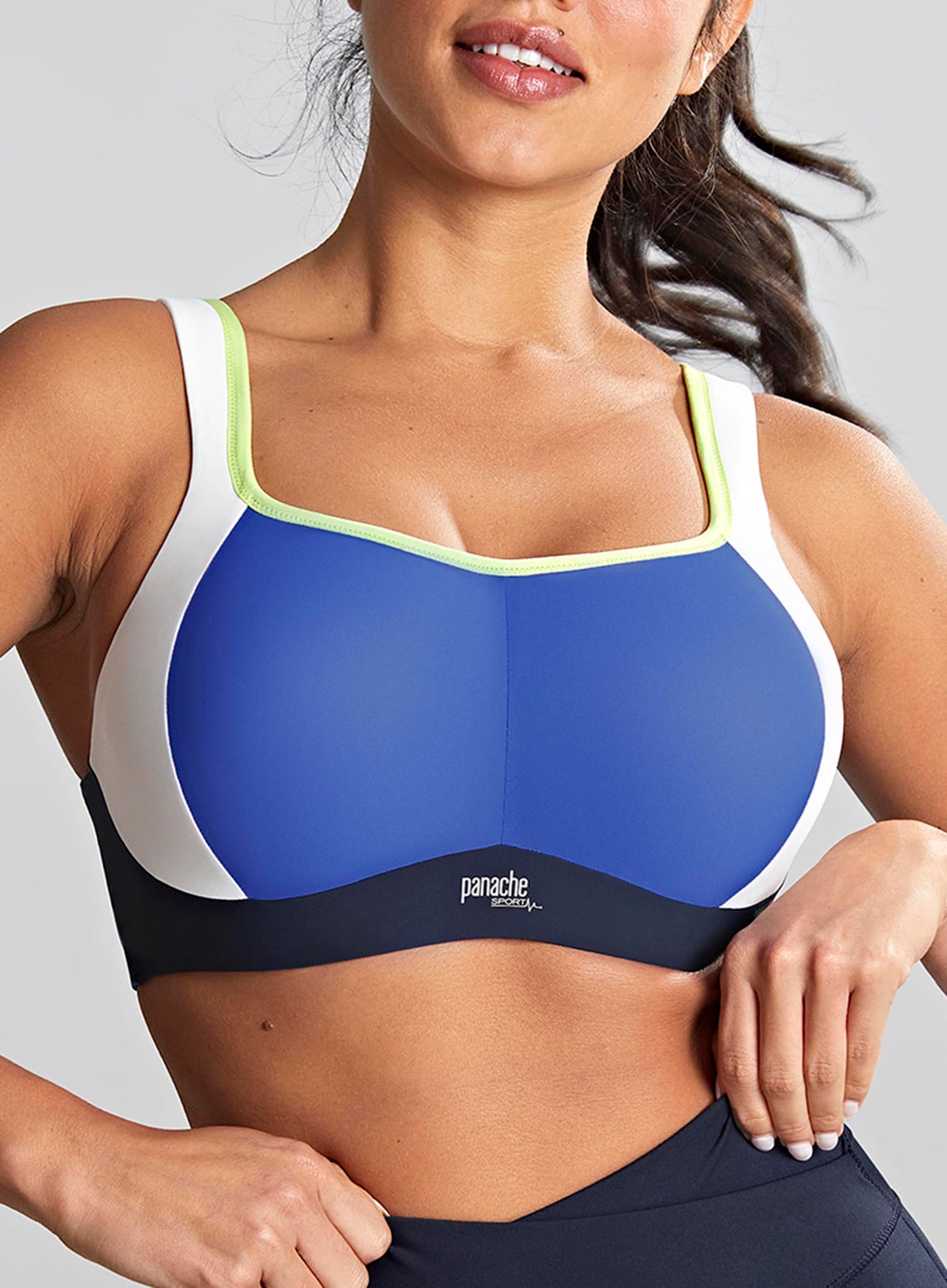 PANACHE SPORT Power Moulded Underwired Sports Bra in Blue, the favourite is back with its signature, award winning design – changing the game for the fuller busted community! Reimagined with a burst of mood-boosting colour, but of course the same tried and true comfort and support, with benefits like softened shoulder straps with racerback ring detail to offer extra stability during exercise. The breathable performance fabric provides excellent ventilation keeping you pleasantly dry for longer.  With the combination of design and fashionable colours, the Panache Moulded Sports Bra will leave you feeling vibrant and satisfied even during the most extreme workouts.