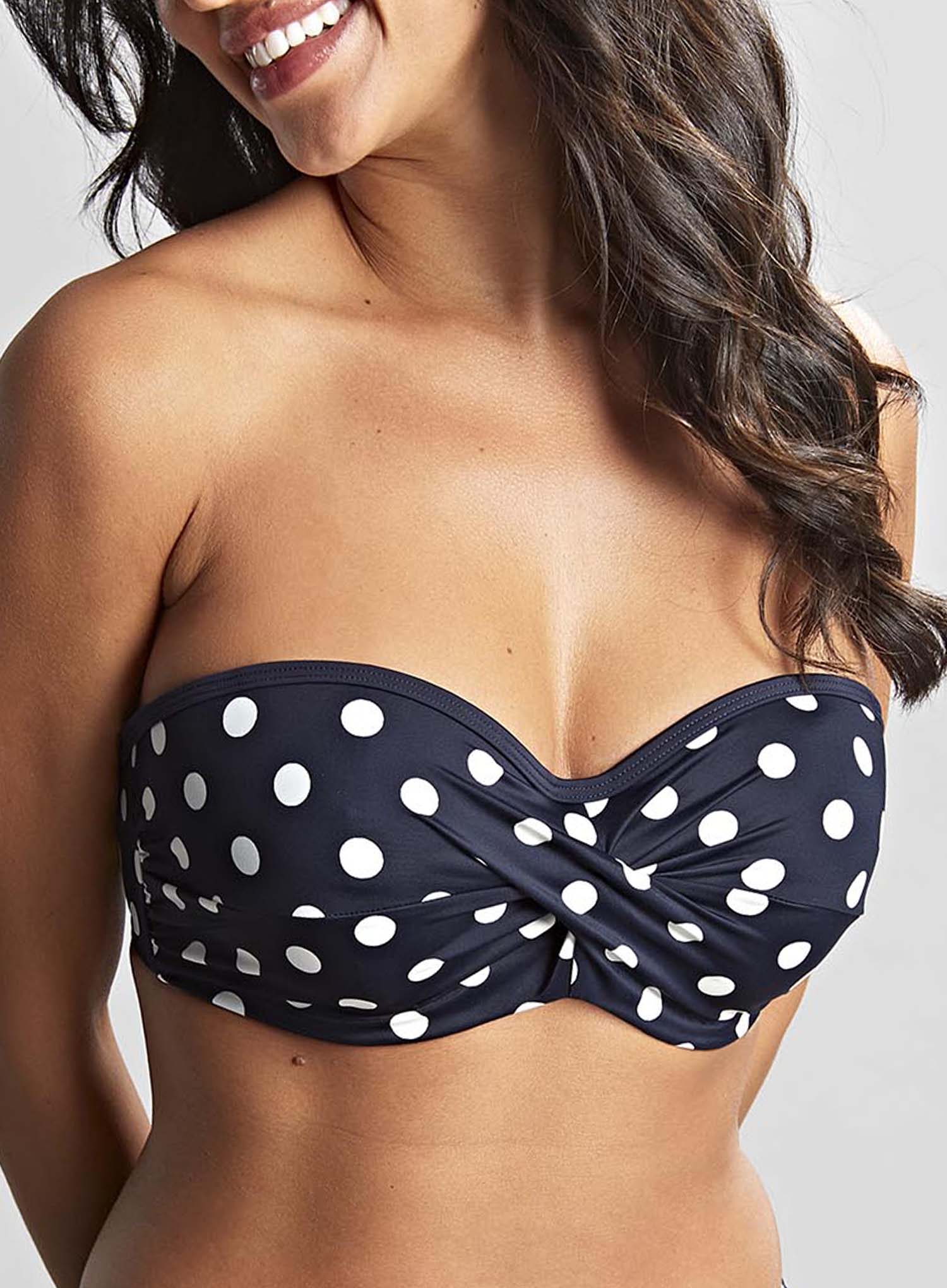 Panache Swimwear: Anya Riva Spot Twist Bandeau Bikini Top Navy Vanilla