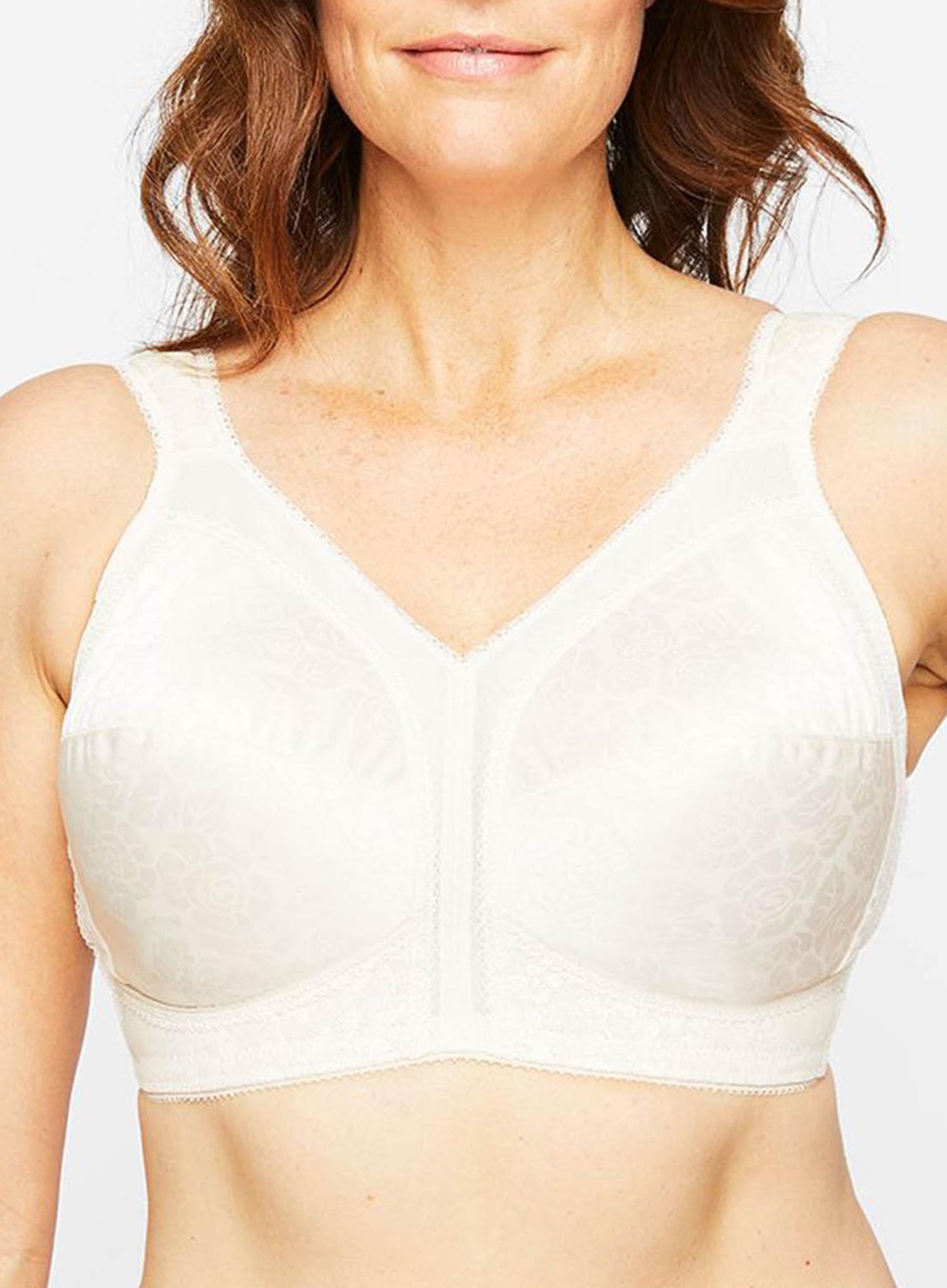 PLAYTEX Comfort Strap Wirefree Bra features Spanette® fabric, with a delicate rose pattern, for extraordinary support that moves with you, for comfort all day. Cushioned straps helps to prevent straps from digging in and relieve pressure from your shoulders. Side panels contour your bust for a great silhouette, and the two-section cup provides a natural rounded shape. The wide underband gives extra support and stability in this wire-free style. What’s not to love?