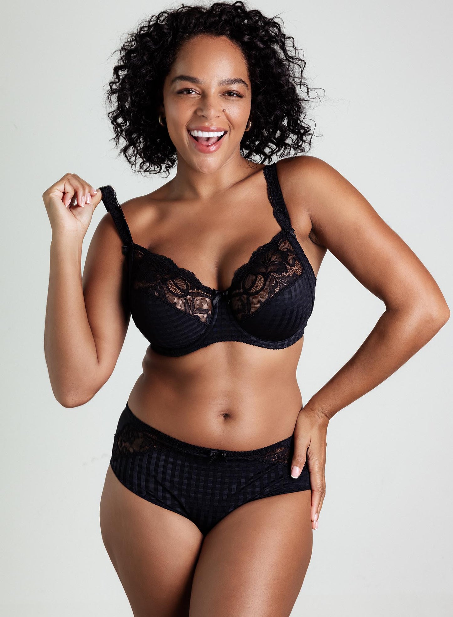 PRIMADONNA Madison Deep Briefs are luxurious and elegant. These sexy high-waisted briefs are made from a fresh and youthful gingham fabric with a flirty lace trim at the legs. The stylish glitter detail is so romantic that it’s no surprise DeBra’s Fitting Consultants are still excited about this elegant classic.