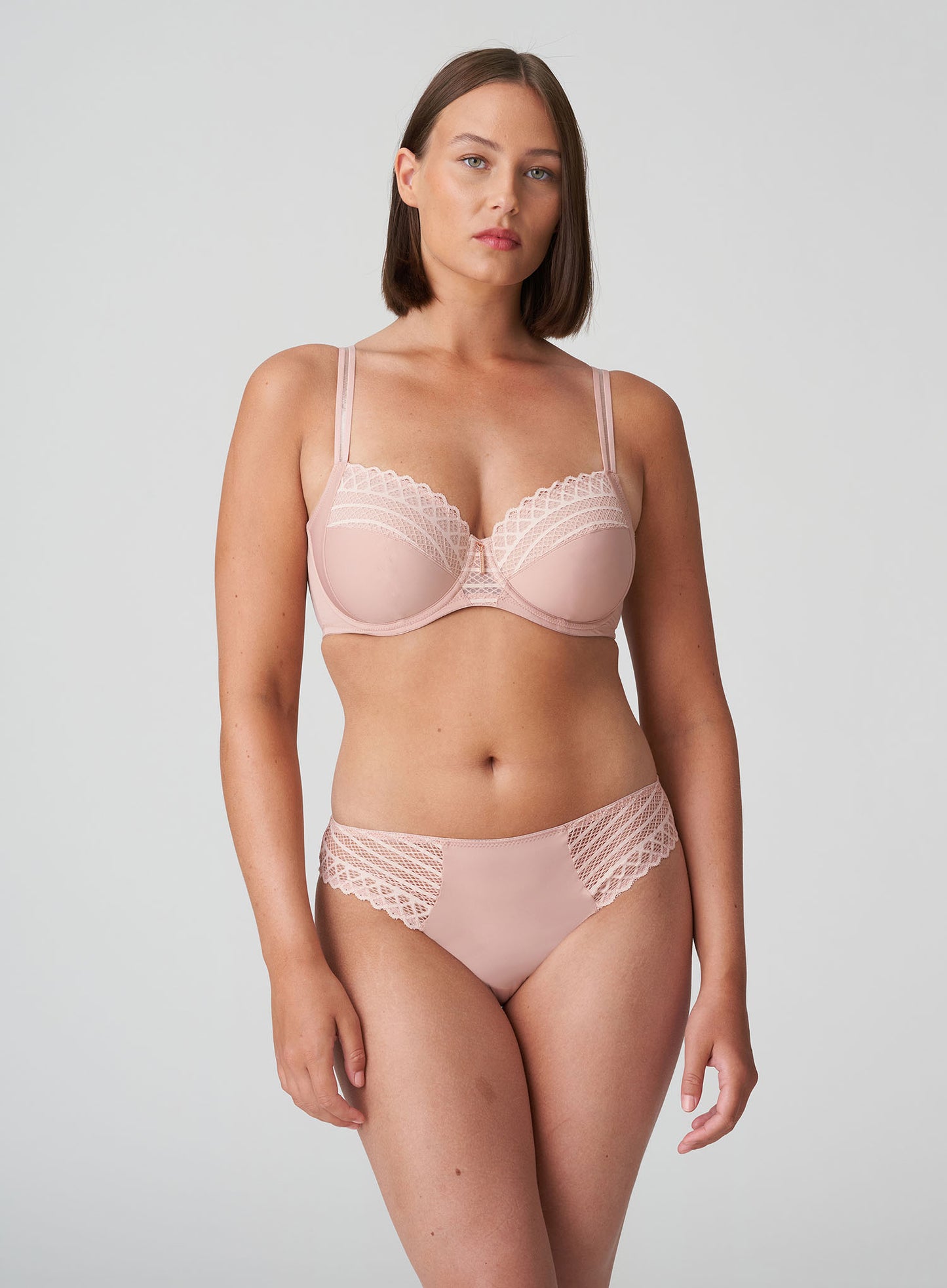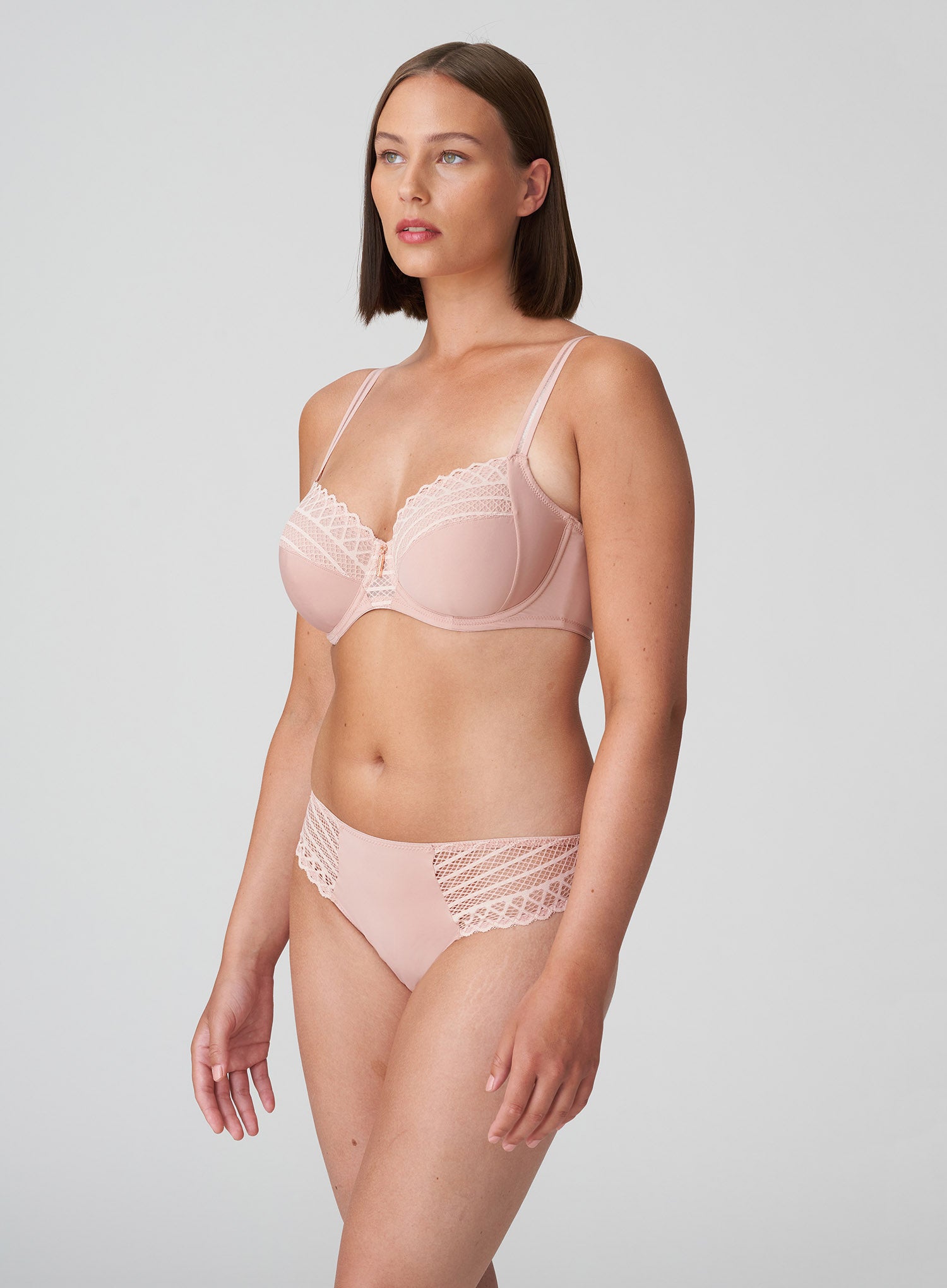 PRIMADONNA TWIST East End Rio Brief is mid rise and perfect for everyday wearing. It a gorgeous Powder Rose hue, this brief can be your go-to for comfortable, everyday wearing. These stylish Rio briefs in a plain opaque fabric, adorned with geometric lace are luxury meets comfort.