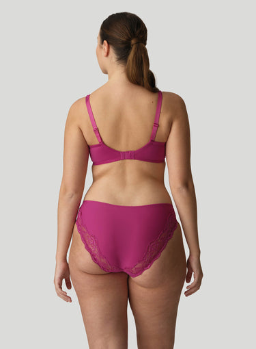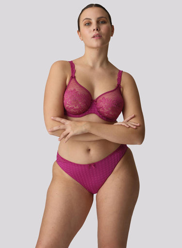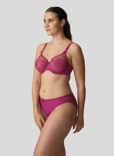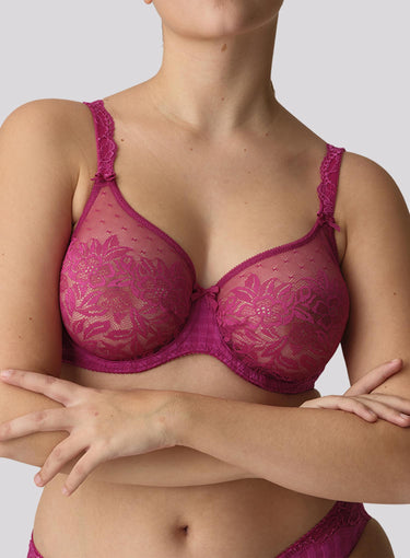 PRIMADONNA Madison Non Padded Full Cup Seamless in Fuchsia Fiesta is a vibrant hue that will inject colour into any winter wardrobe. Expressive shades have been a hit on the runways recently, and exciting, worn-to-be-seen lingerie is no exception. The bra with the most loyal fan base we’ve ever seen, the focal point of Madison continues to lie within its unique fit, which is why it remains a favourite for customers and fitters alike. This design features preformed cups and a full cup in an almost-heart-shaped line that creates a sensual look. The cups are all in gorgeous French lace openwork with a modern pattern. The transparent lace gives the bra a light feminine look, and the preformed cups lift and centre your breasts, giving them a perfectly round shape.