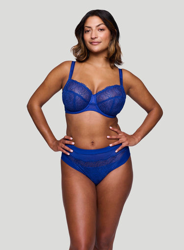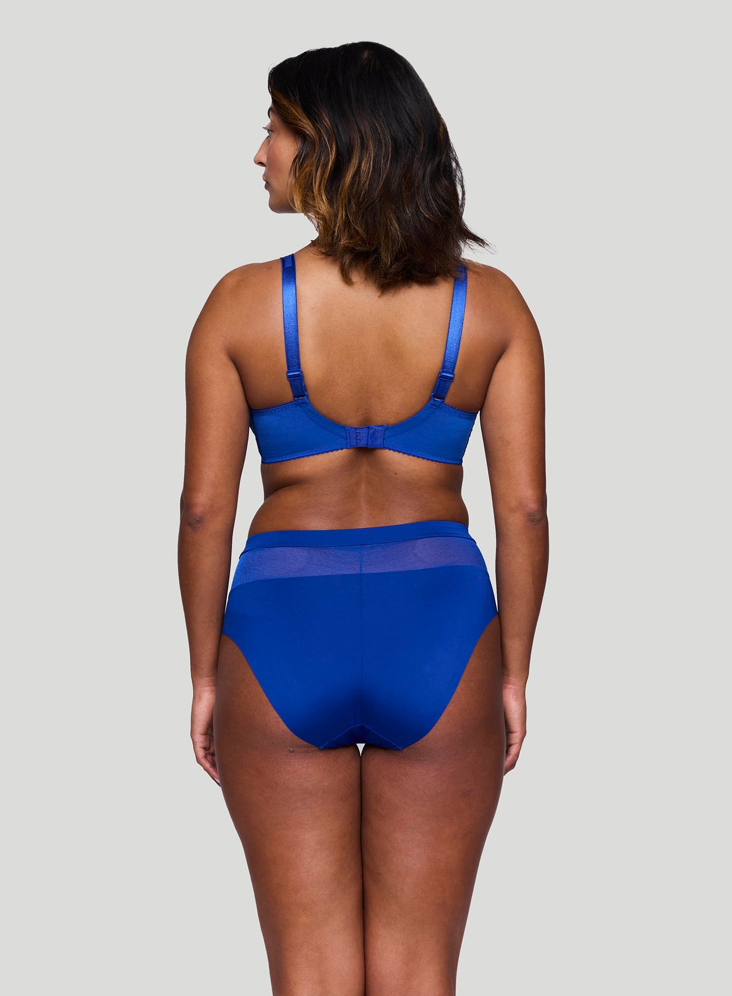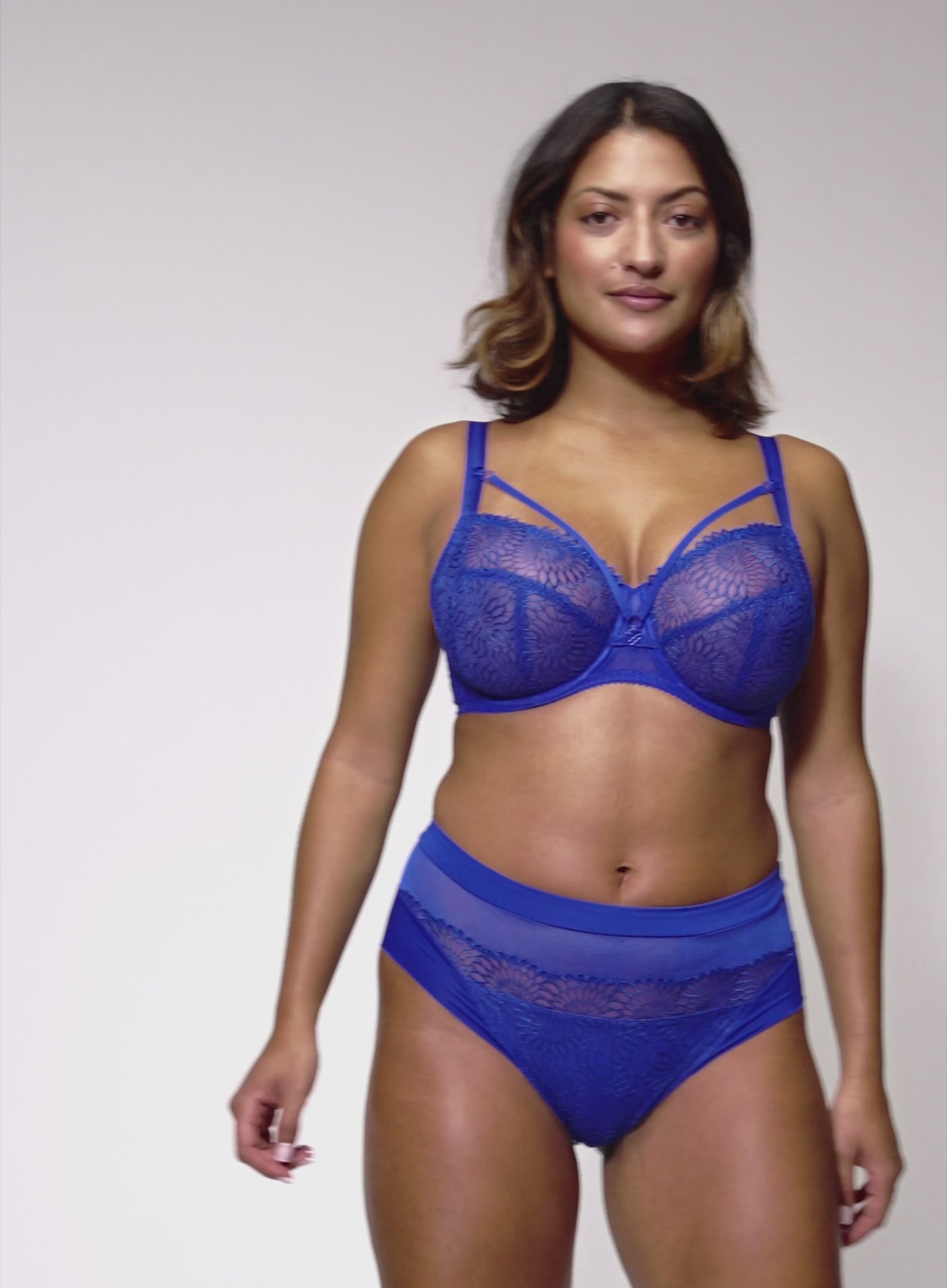 PRIMADONNA Sophora Full Brief Blueprint sees the return of a favourite in a striking shade of royal blue that beautifully contrasts with any skin tone. The Sophora collection is well known for an undeniably seductive look and superior fit. Higher rise than a classic full brief, these provide a great amount of coverage, even providing a slight shaping effect over the hip are. The Sophora is the most daring series in DeBra’s PrimaDonna collection.
