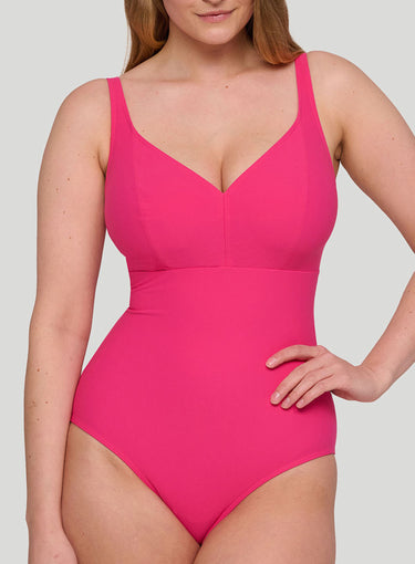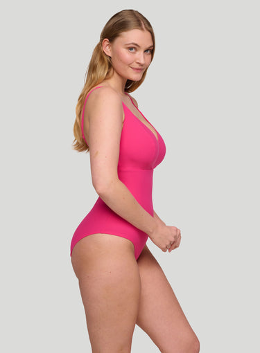 PRIMADONNA SWIMWEAR Aswan Wire Free Plunge Swimsuit Dragon Fruit is designed thoughtfully to provide exceptional support for fuller busts—now without underwires! Fans of our bestselling Montara bralette will be thrilled to discover the same beloved wireless fit in swimwear. This style is airy, comfortable, and vibrant, crafted from a powerful fabric that minimizes the need for linings. It's quick-drying, easy to wear, and 100% on trend. The high-cut leg gives this design an alluring and bold look, while still providing good rear coverage. Dragon Fruit is a stunning shade of pink that will serve you for summers to come!