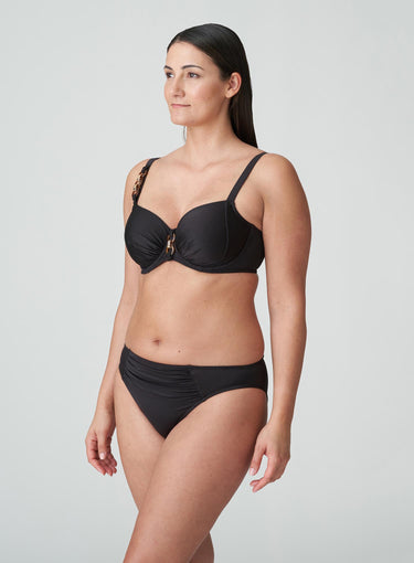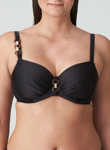 PRIMADONNA SWIMWEAR Barrani Full Cup Bikini Top in Roast Coffee is sail-worthy swimwear, with a the promise of a flawless fit. This collection features the launch of a new colour for PrimaDonna – Roast Coffee. It’s every bit as chic as black, but a more flattering shade for all skin tones - think a warmer shade of black. The three-piece construction with firm doublets inside offers very comfortable support. A subtle sheen and tortoise shell decorative elements on one of the straps and center-front creates a trendy beach look.