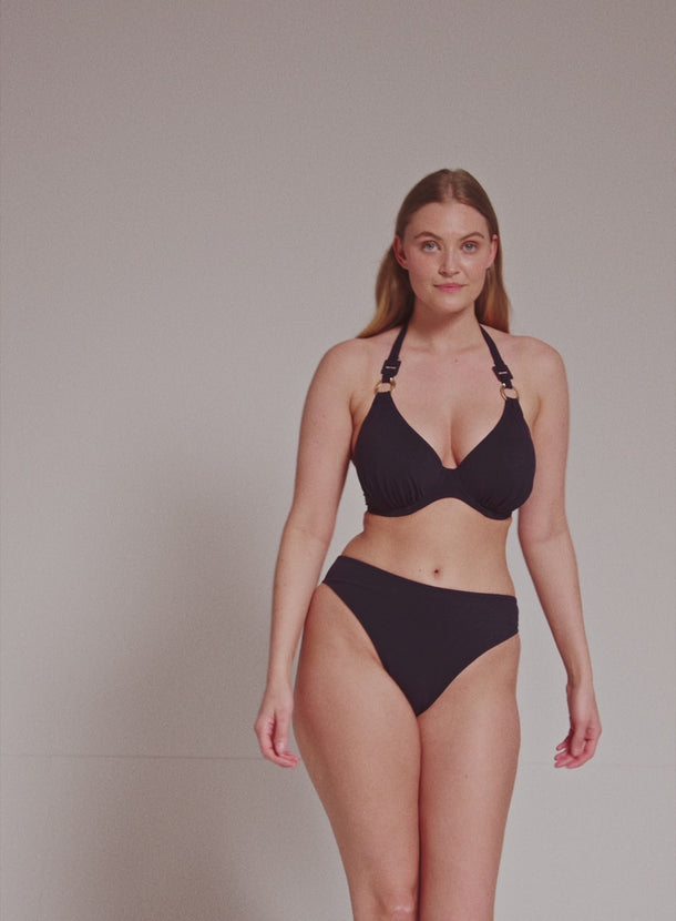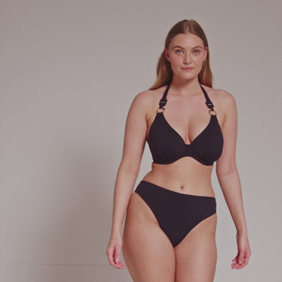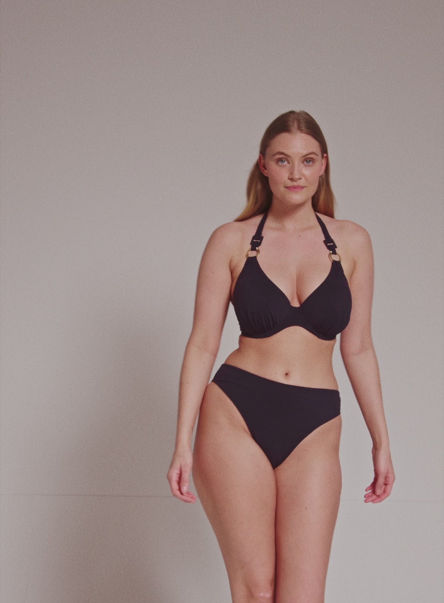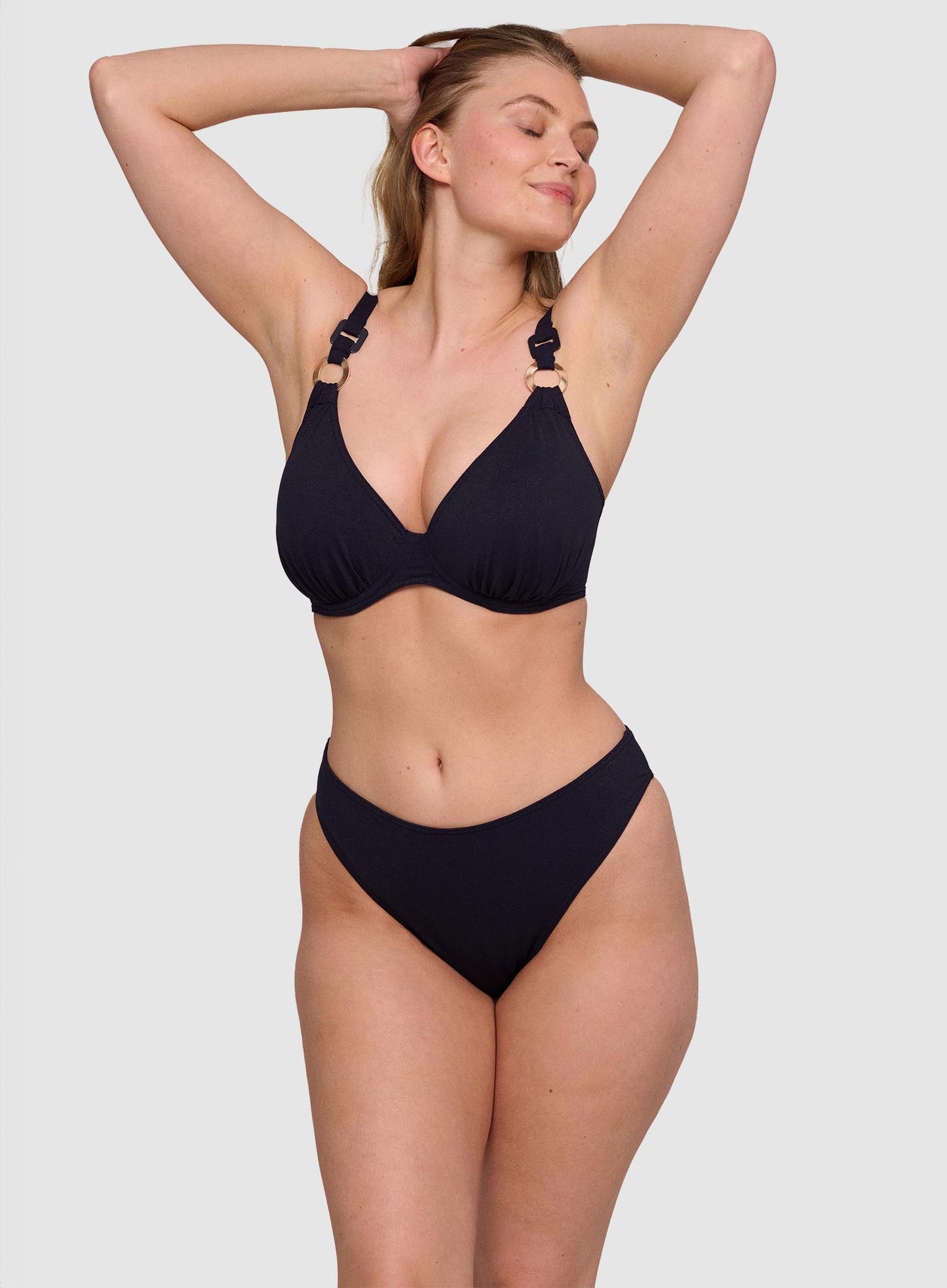 PRIMADONNA SWIMWEAR Pinner Brazilian Bikini Brief Dazzling Sky is the perfect blend of easy wearing and minimalist style. The light and luxurious material – with stylish gold and blue details that never get hot in the sun - will appeal to anyone. This light, luxurious fabric—featuring chic gold and blue accents that stay cool in the sun—offers a perfect fit for all shapes and sizes. A new PrimaDonna Swimwear shape to DeBra’s, these Brazilian briefs sit high on the hips and feature cheeky coverage for a flattering, retro inspired look.