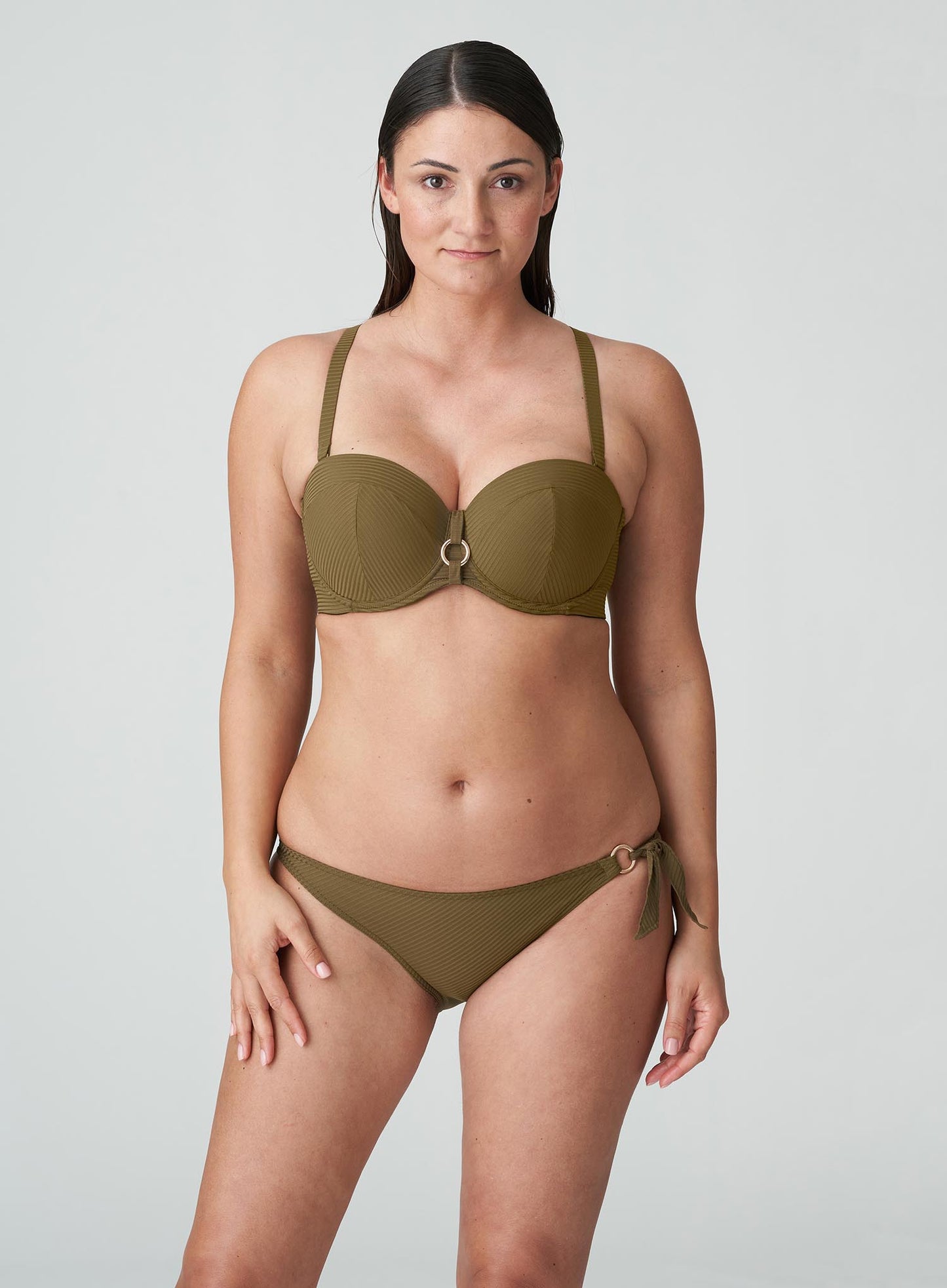 PRIMADONNA SWIMWEAR Sahara Padded Strapless Bikini Top in Olive, a flattering essential with a seductive, seventies inspired touch. This retro inspired bandeau-style top is designed to lift and support with padded cups and optional shoulder straps that can be added for extra comfort and confidence. Retro inspired Olive is a warm and flattering shade that complements any skin tone, making Sahara an absolute must-have!