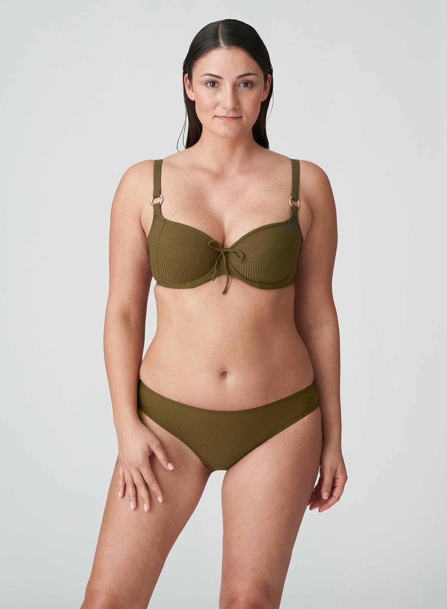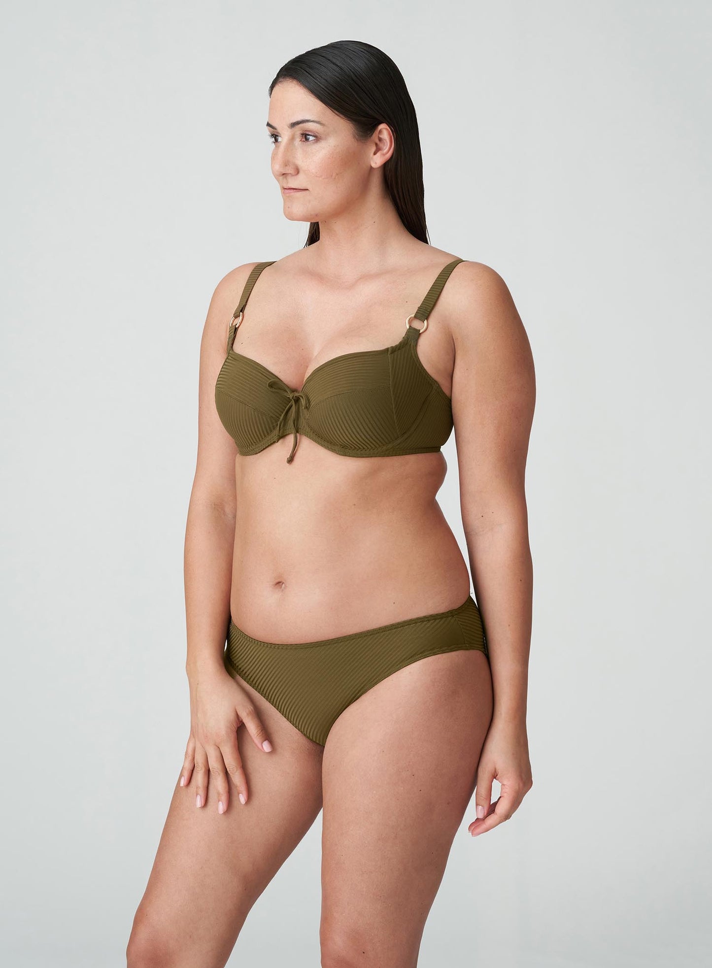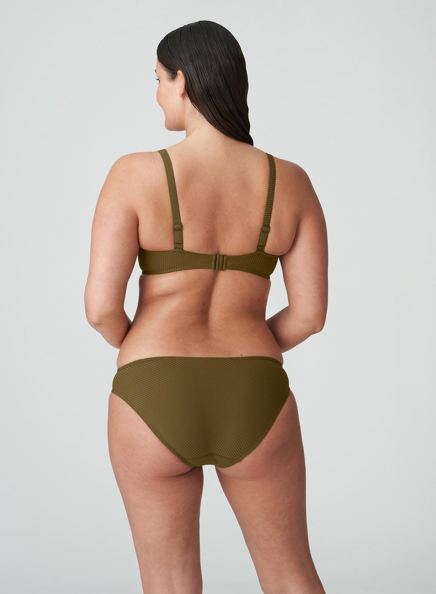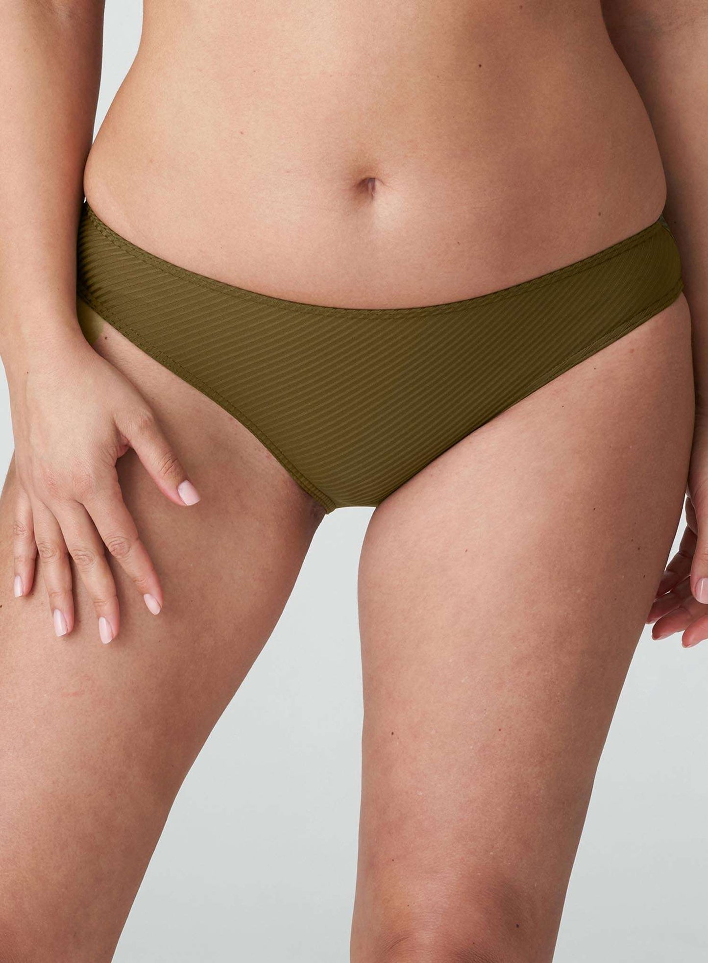 PRIMADONNA SWIMWEAR Sahara Rio Bikini Brief in Olive, a flattering essential with a seductive, seventies inspired touch. Featuring a classic rio cut, this bikini bottom is crafted from a fine ribbed fabric with a retro look which prevents cutting in. Olive is a warm and flattering shade that complements any skin tone, making Sahara an absolute must-have!